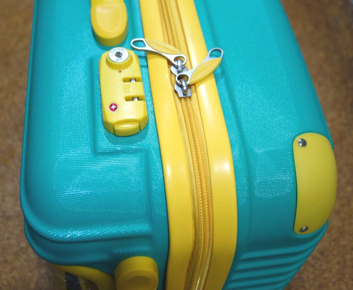 色はグリーンとイエローと派手なのを選びましたが、空港で預けて出てきた時にわかりやすく他人のと入れ違う事もないのでスーツケースは派手なカラーにする事をおすすめします。セール時など変わったカラーのみ安い事があるのでそれを狙うのもありでしょう。