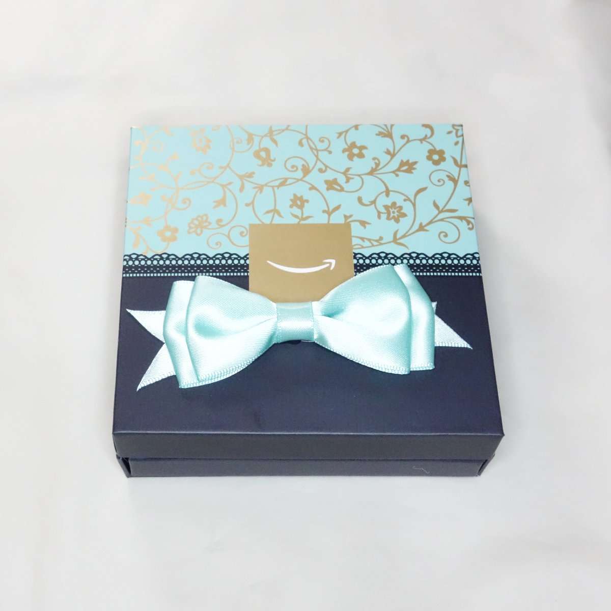 アマゾンギフト券はデジタル以外では様々な箱やカラーなどが用意されていてリボン付きのボックスにしました。