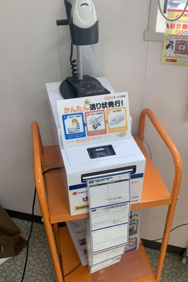 ゆうプリタッチと言う送り状をプリントする専用の端末が郵便局にあるので、送り状作成時に取得したQRコードを読み取らせると送り状とインボイスがプリントされます。以前の手書きで何度も局員の方に確認してもらったり書き直したりの手間がなくなり楽になりました。