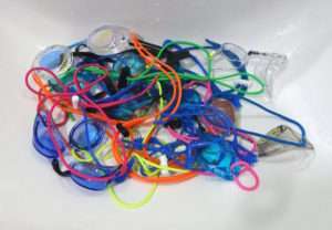中身はゴーグル本体、ラバーバンド、ゴーグルと鼻の隔調整用のパーツ、バンドの留め具
