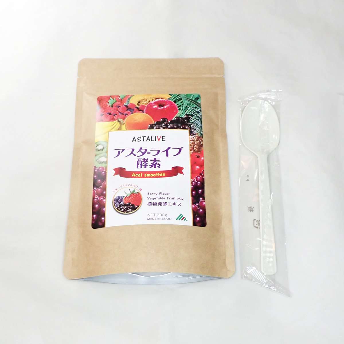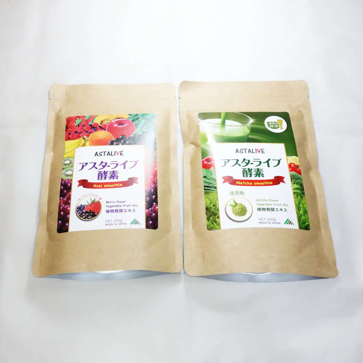 今回購入したのはアスタライブの酵素スムージーフルーツミックスベリー味です。パッケージには英語だとアサイースムージーと表記されています。
