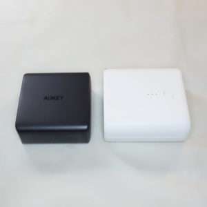 シンプルに入っているのは充電器本体とカード類のみとなりケーブルなどは付属していません。同時に購入したAukeyのモバイルバッテリー10000mAhにはUSB-C – USB-Cケーブルが付属していたので、この充電器と合わせればすぐに充電が可能になります。