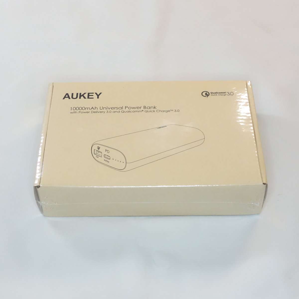 今回選んだのはAUKEY(オーキー)モバイルバッテリー10000mAhでPower Deliverly 3.0(PD パワーデリバリー)3.0とQualcomm Quick Charge 3.0(クアルコムクイックチャージ)対応です。小型で大容量10,000mAHでUSB-C対応と最新の仕様になっています。