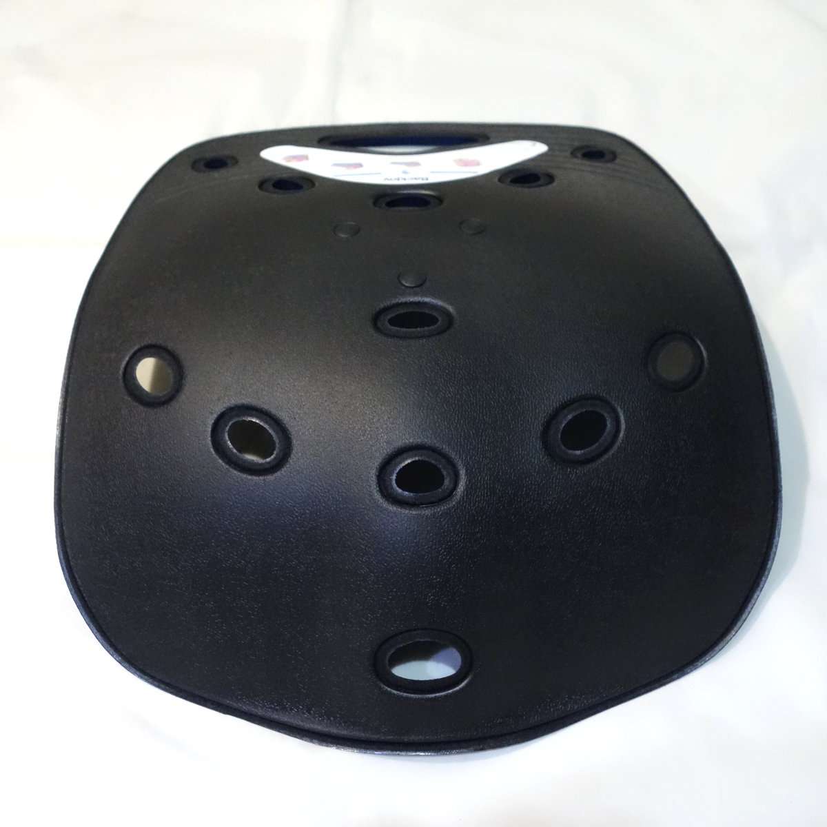 かなり硬い素材で出来ていて椅子に接する面積も少ないので、椅子の上に乗せても動く事なく安定します。かなり硬い素材なので木の丸椅子などに直接置くと椅子側に傷がつきますので、気になる方は一枚布をひくなりするとよいと思います。各穴は通気用で蒸し暑くなる季節には効果があります。