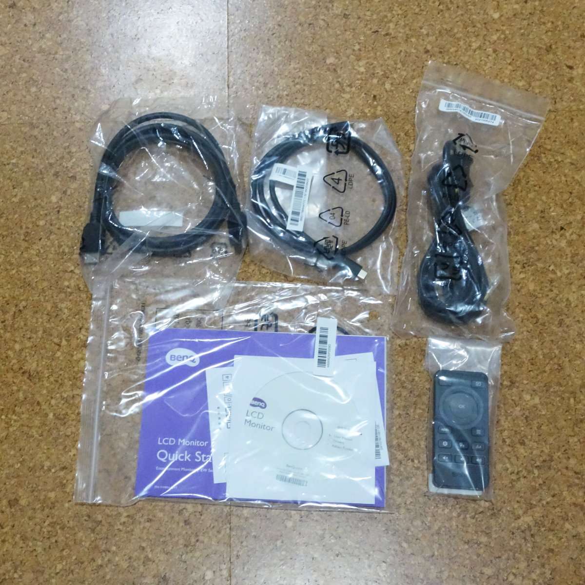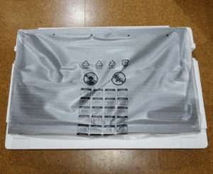 以前の32インチのテレビとは違いコンパクトで箱もそれほど大きくありません。スタンドは別体になっているので組み立てる必要があります。スタートガイドのCDとHDMIとUSB-Cケーブルが付属しています。