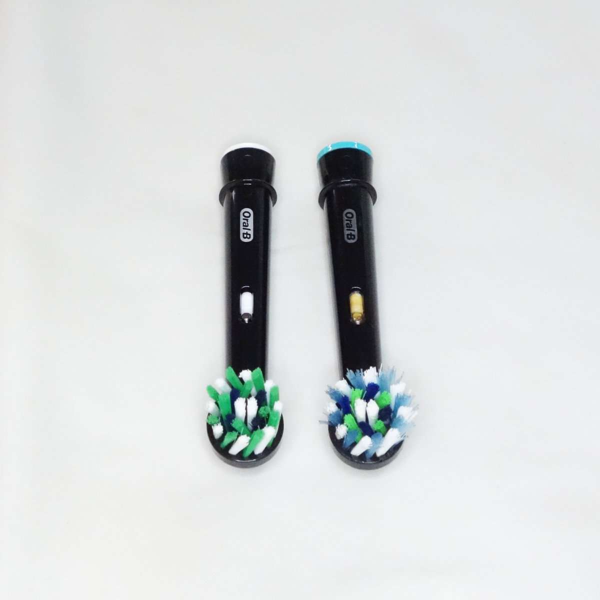 交換時期がきた日本正規品のブルーのブラシと比べてみました。3ヶ月ほど使用した替えブラシで、もう2ヶ月を過ぎたくらいからブラシが開いてきて最後は歯を磨いていてブラシの劣化がわかるほどでした。