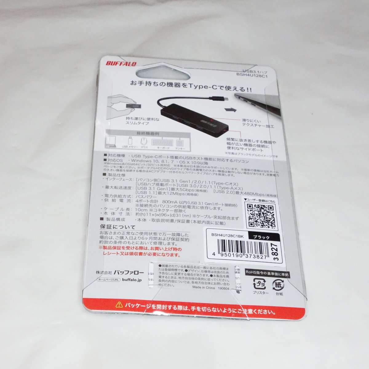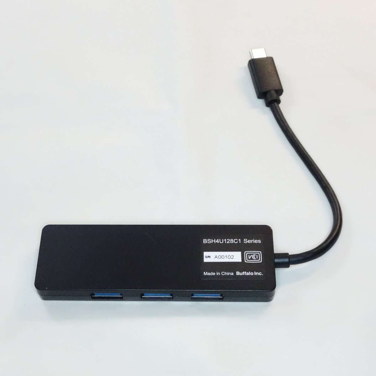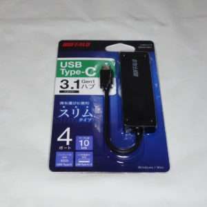 今回手に入れたのはBUFFALO(バッファロー)のUSBハブで型番はBSH4U128C1でカラーはブラックです。USB-Cに接続して通常のUSB Type-Aが4ポート使用出来るタイプのハブでコンパクト設計でケーブル長は10cmになります。