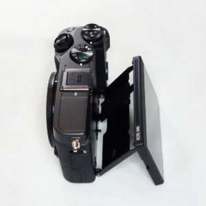 完全に好みの問題なのがこのチルトかバリアングルかまたは固定がとなる液晶モニターのタイプです。動画中心の方はバリアングルでしょうし、静止画やセルフィー好きの方はチルトでしょうし、軽量なガジェット好きな方は固定を好むでしょうし難しいところです。EOS M6の液晶パネルはチルト式で前に向けるとセルフィーが撮れるようになっています。