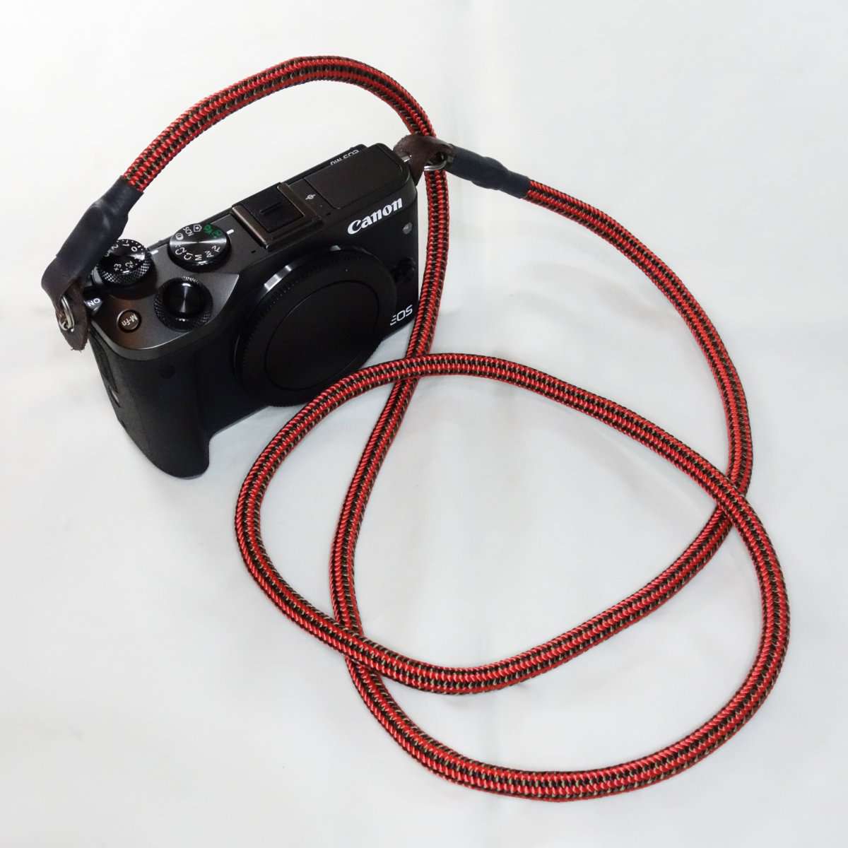 簡単に作れるクライミングロープを使用したストラップです。有名なところだとLeicaのダブルロープストラップですが、安価で済ませるために自作する事にしました。自作で格安で済ませるとは言え、クライミングロープ自体はスイスのアウトドアブランドであるMAMMUT(マムート)の登山に使用が出来る本格的なロープを選んでみました。赤いクライミングロープは直径7mmで小さめのミラーレスカメラと軽めのレンズの組み合わせなら問題ない強度で、肩掛けでも食い込む事はなく使いやすいストラップです。