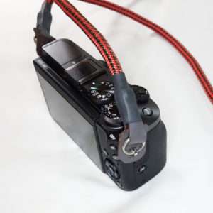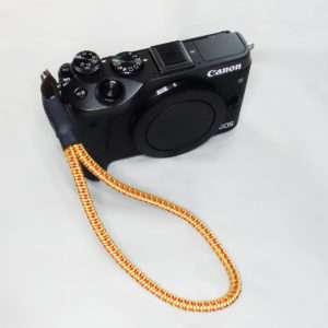 ハンドストラップ(リストストラップ)もいくつか自作していますが、こちらは先程と同様のマムート製クライミングロープを使用したハンドストラップです。通常のハンドストラップより短めなので付ける時は狭いのですが、撮影時はよりフィットして落としづらくなっています。小型ミラーレスカメラでカメラバッグに入れて持ち運ぶならハンドストラップが邪魔にならずにおすすめです。