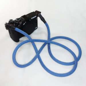 ブルーのストラップも同じマムートのクライミングロープを使用していますが、こちらは少し太く8mm経で強度が上がっています。比較的大きめのレンズでもカメラと合わせて1kg前後であれば対応が可能です。クライミングロープストラップ試作1号だったのもありあまり重たいレンズには使用しない事にしています。