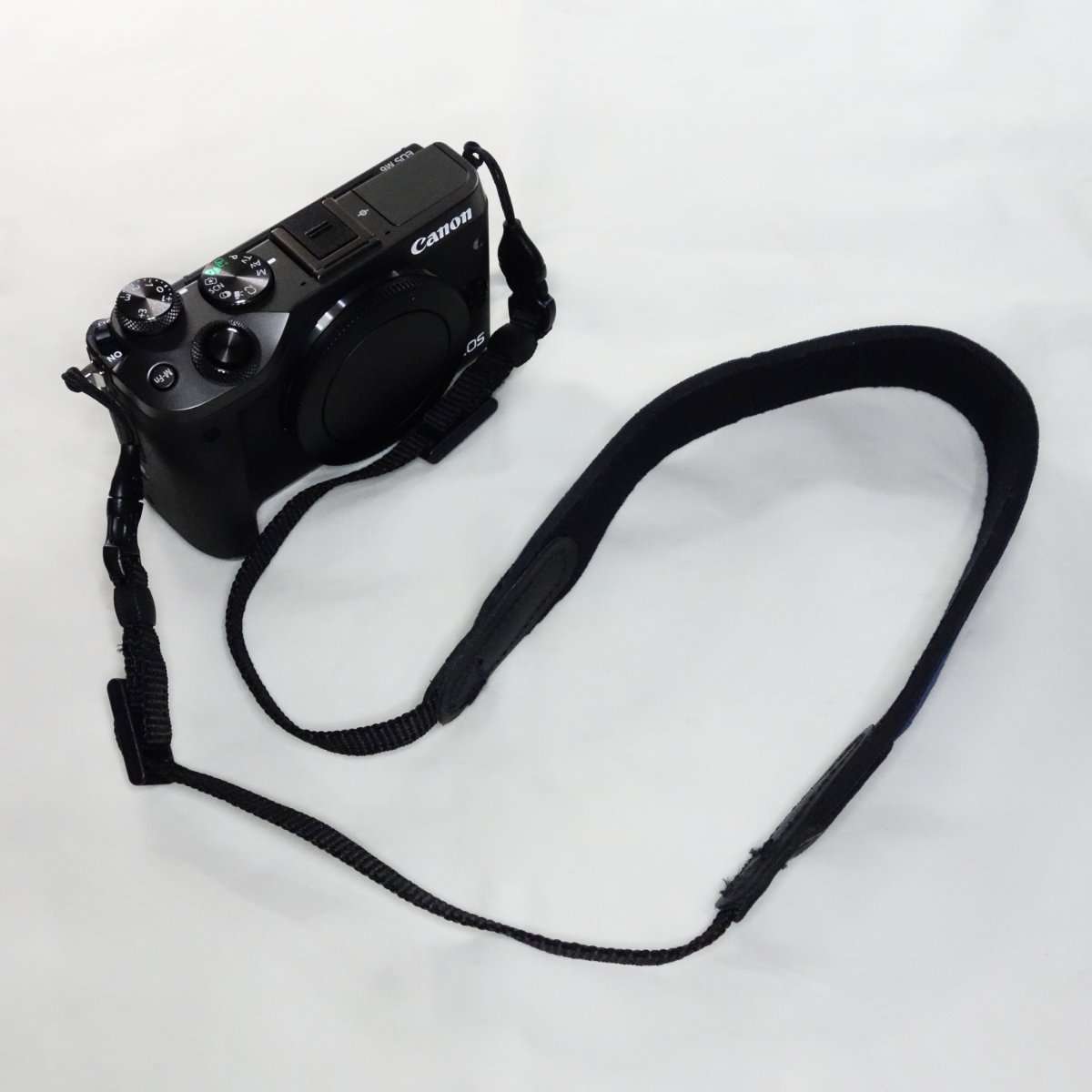 コンパクトカメラ用のOp/Tech Bin/Opストラップです。パッド部分がネオプレーン素材なので首や肩にやさしく使いやすく、コネクターで簡単に取り外せるので保管の時にも便利な優れたストラップです。軽量なカメラ向きのストラップなのでEOS M6と組み合わせるレンズによっては若干重たすぎるかもしれません。