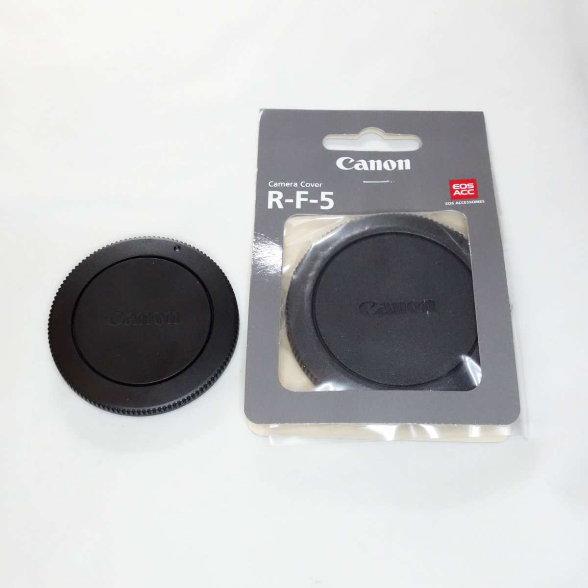 同じキャノンのミラーレスでもフルサイズのRFマウント用のキャップと大きさを比べてみるとフルサイズはやはり大きいのがわかります。