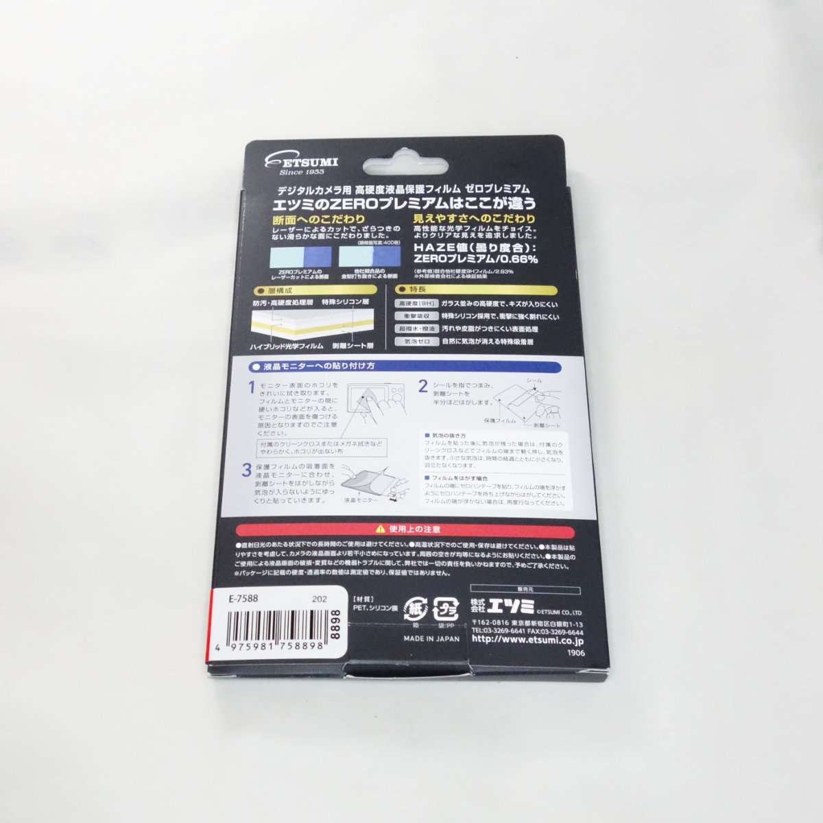 デジタルカメラを購入したら撮影前に必ずプロに液晶保護フィルムを貼ってもらっています。今回はエツミの超高級液晶保護フィルムのZEROにしました。9Hとガラス並の硬さがあるフィルムでSONY a7Cでも使用した同じフィルムです。大型家電量販店やカメラ専門店などであれば液晶保護フィルムを貼るサービスを行っているので自分で貼れるか不安な方はどうせ何度も貼るものでもないのでプロに頼んでしまいましょう。
