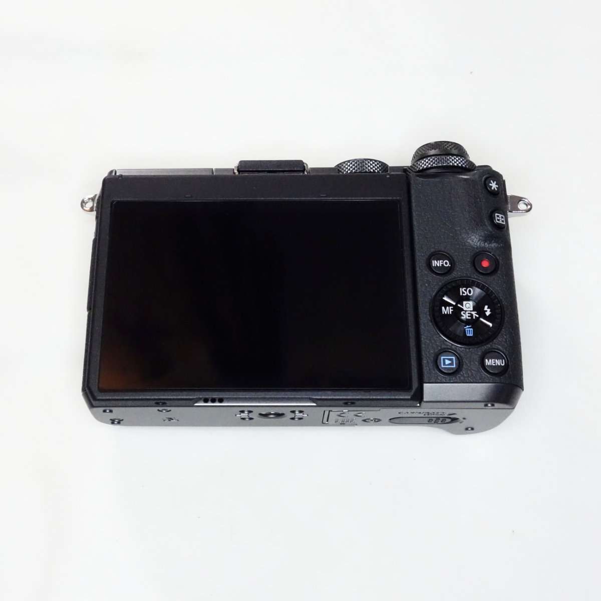 本体を見ていくとファインダーが無いだけにコンパクトでダイヤルなどの質感がよく回した時のクリック感などが心地よいです。ボタン類も他のキャノンのカメラと同じようなレイアウトなのでキャノンのカメラを使用している方は操作に慣れやすいかと思います。