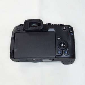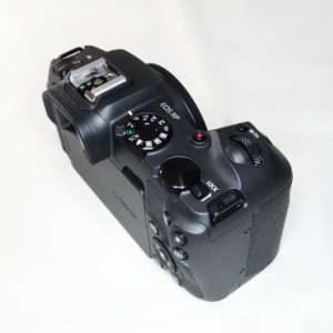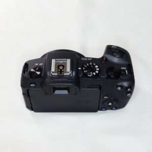 箱のインパクトが凄すぎてスタートはいまいちでしたが、カメラ本体はコンパクトで持った瞬間にこれは軽いとわかります。フルサイズセンサー専用で開発されたRFマウントだけにボディキャップが大きめです。