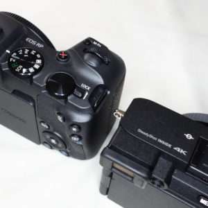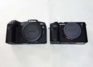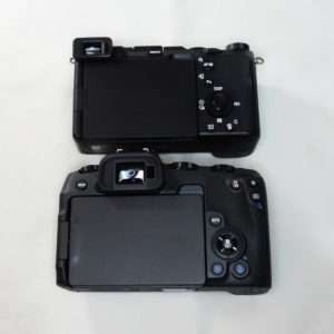 APS機から発売して同じマウントのままフルサイズ化したソニーのEマウントとは違い後発のキャノンはEF-Mマウントをフルサイズ化せず新マウントとしてフルサイズミラーレス機に参入してきたのでマウントは非常に大きいです。フランジバック(マウントからセンサー面までの距離)はソニーが18mmでキャノンが20mmなのでヘリコイド付きのマウントアダプターなどだとソニー用の方が繰り出しが大きかったりしますが、普通にAFのレンズだけを使用する場合はあまり関係のないポイントです。