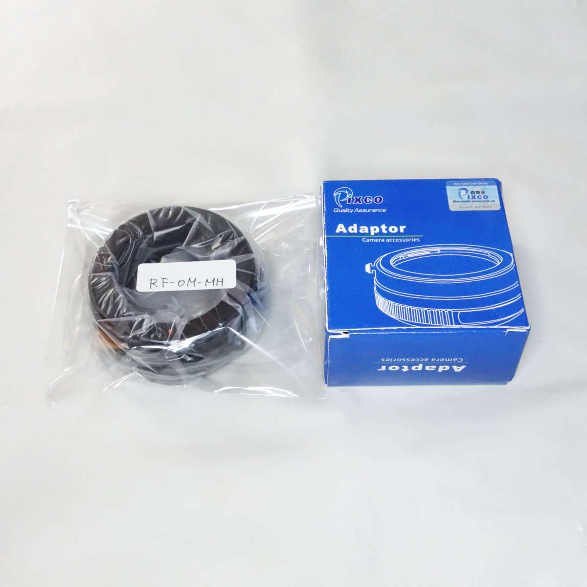 今回購入したのはPixco(ハシュポ)のCanon RFマウントをオリンパスOMマウントへ変換するヘリコイド付きマウントアダプターです。オンラインストアで購入すると中国からの発送で到着まで1ヶ月以上かかったりする事もあり今回は国内のストアで購入しました。ただ、箱には入っておらず厚みも3cm以上なのにメール便的なので送られてきました。