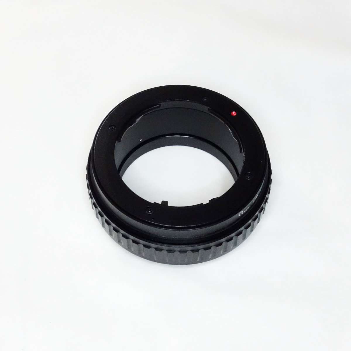 本体のダイヤルを回すとヘリコイドが動作してマウントアダプターの全長が伸びます。これはフィルム時代のマクロリング(デジタル用でもありますが)を使用するのと一緒で最短撮影距離が短くなります。マクロリングとの違いはレンズを取り外す必要なく長さを調整出来てしまう便利なところです。マクロ状態にした時は無限が合わなくなるので通常撮影の時に戻し忘れないようにしましょう。