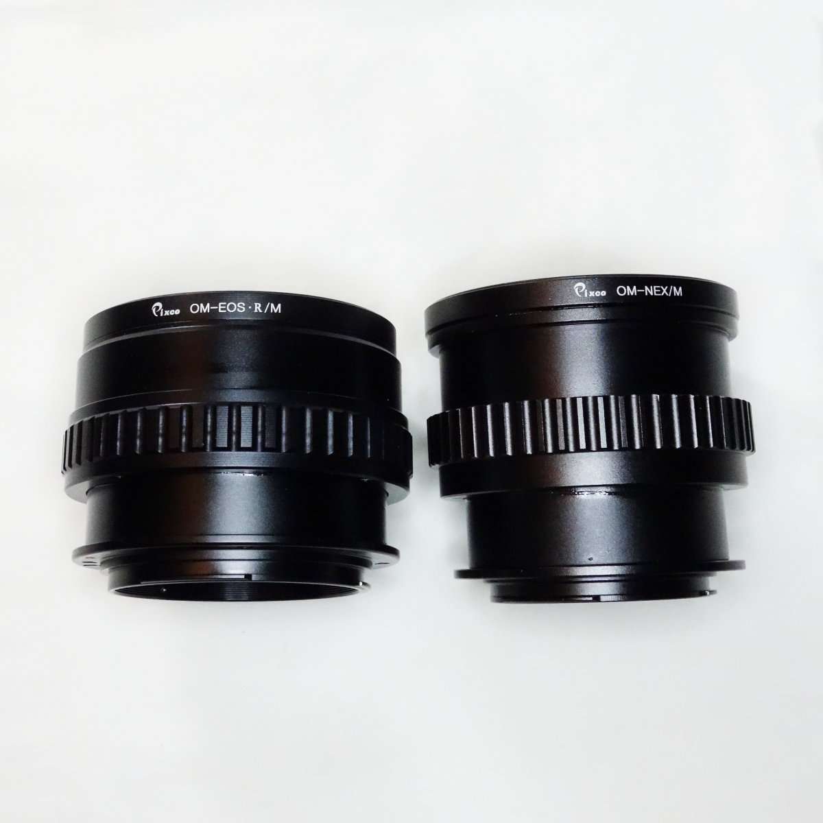 同じハシュポのオリンパスOM用のマウントアダプターと比べてみるとフランジバック(マウントからセンサーまでの距離)がキャノンRFの方が2mm長いためにマウントアダプターの全長が2mm短くその分ヘリコイドの繰り出しが短くなっています。実際に撮影でもEマウント版の方がより寄れるのでマクロ倍率をよくしたい方はソニーかニコンを使用すると良いでしょう。