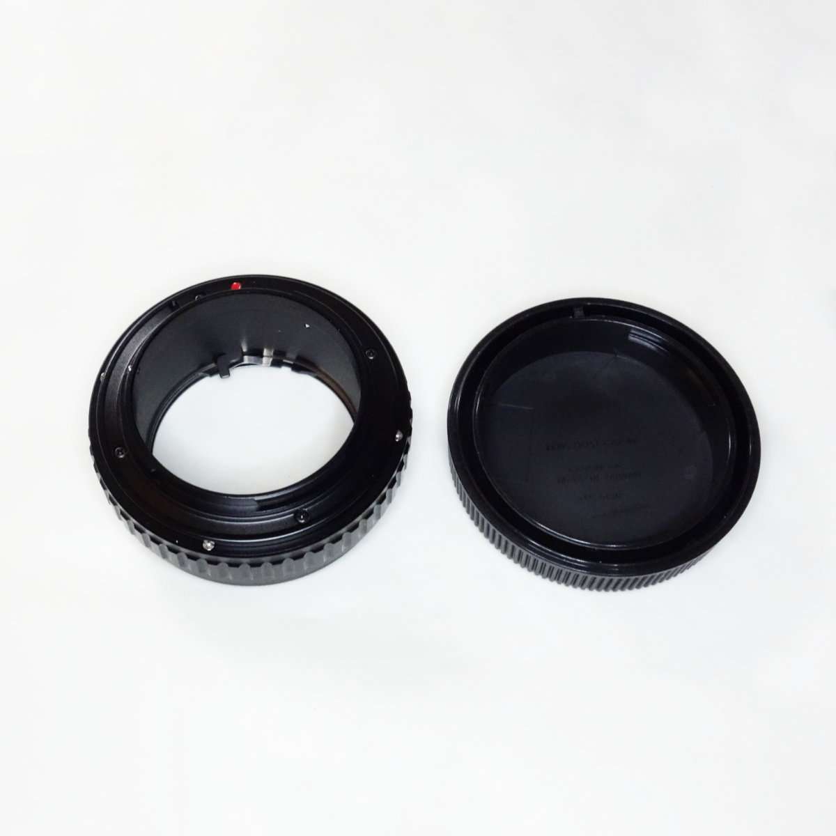格安のマウントアダプターとは言えカメラ用なのでホコリ対策はしておきたいので前後キャップを取り付ける事にしました。保管や移動時にはキャップを取り付けておいた方がカメラバッグ内のホコリやゴミなどからマウントアダプターを守る事が出来ます。