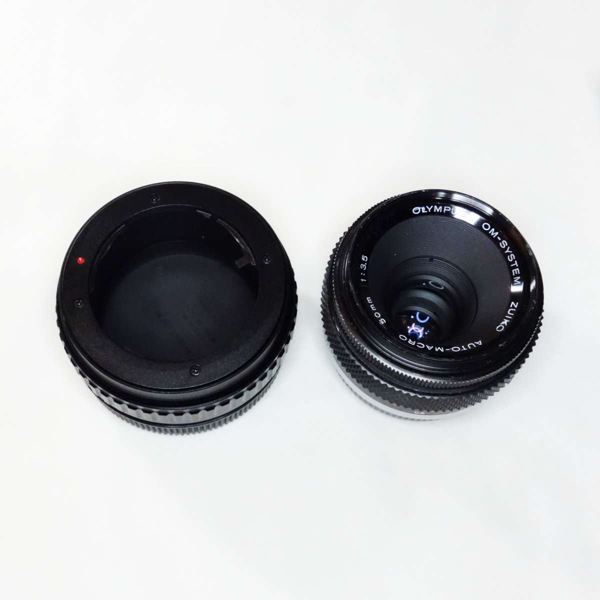 使用するのはOM Zuiko 50mm F3.5 Macroとすでにマクロの名がついているマクロレンズです。元々ハーフマクロなのでマクロアダプターを付けて等倍マクロ前後にするために今回のマウントアダプターを使用します。このレンズはデジタルで使用しても非常に色乗りがよく何でも撮れてしまい低価格なので最初のマウントアダプターで使用するレンズにおすすめです。