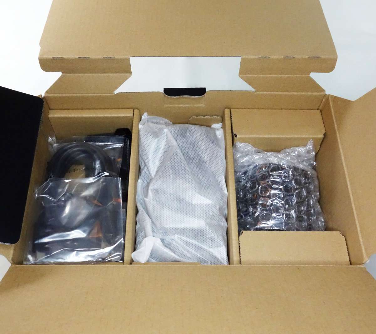 届きた時から箱を揺するとガタガタと音がしてこれで大丈夫なのか不安になるほどです。開けてみると上下段に分かれていて特にカメラ本体が入っている下段はすかすかです。よくみるとレンズを入れる場所らしきトレーの形状があるのでレンズキットと箱を共用にしているのでしょうが、この大きな置く場所も困るし雑な印象です。しかもトレーはプラスチックか樹脂系でいろいろと微妙過ぎるパッケージングです。