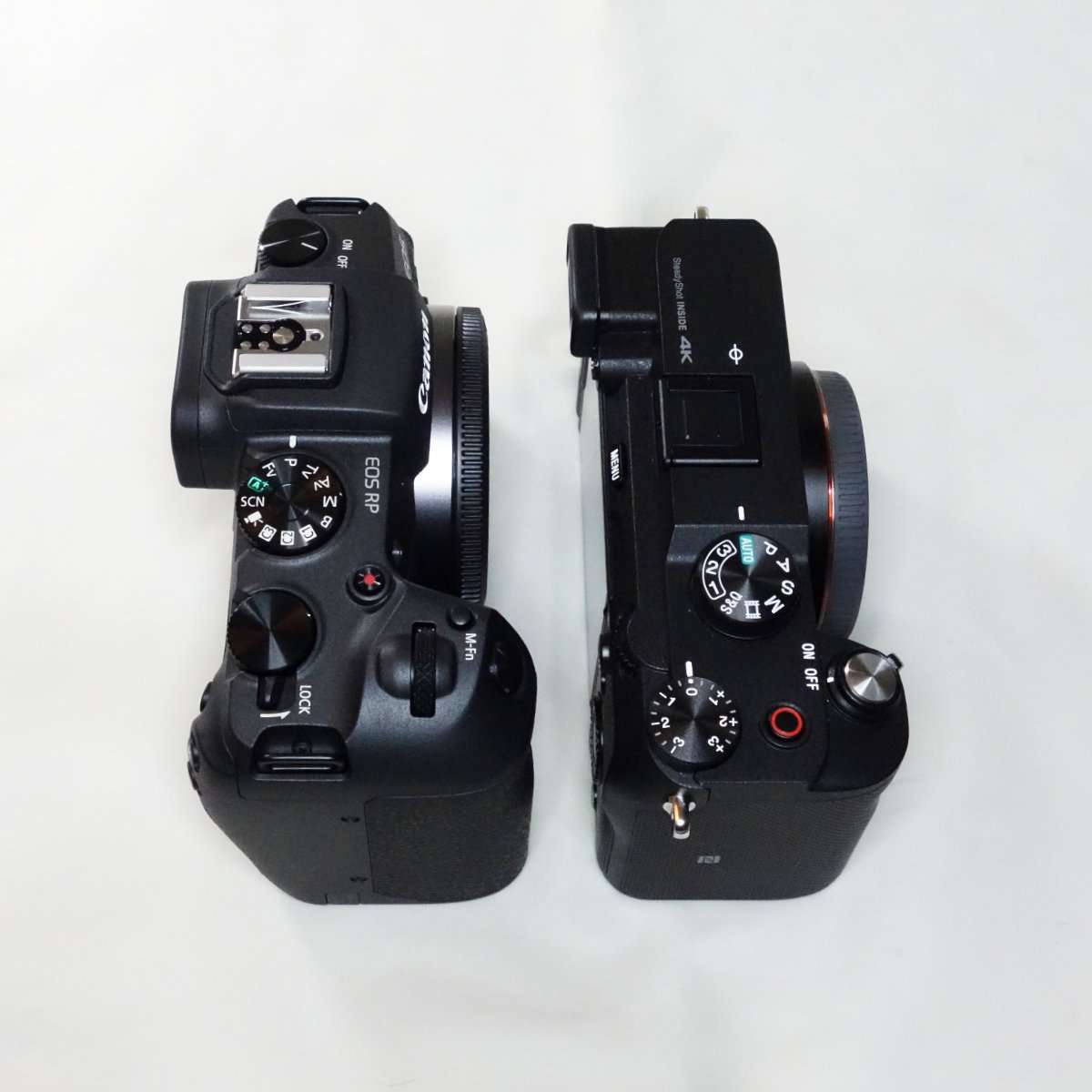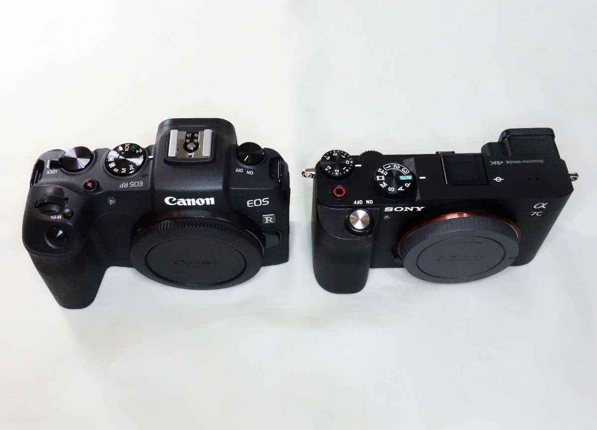 ソニーa7Cと比べるとEOS RPは一回り大きいですが、素材感なども含めた持った時に感じる軽さはEPS RPです。a7Cはボディ内手ぶれ補正が付いててEOS RPに手ぶれ補正機能は付いていませんが、手ぶれ補正がついてこれだけコンパクトなa7Cは本当に凄くさすがソニーと思える出来です。RFマウントではないa7Cの方がRFカメラ(レンジファインダー)のようなスタイルなのも面白いところです。