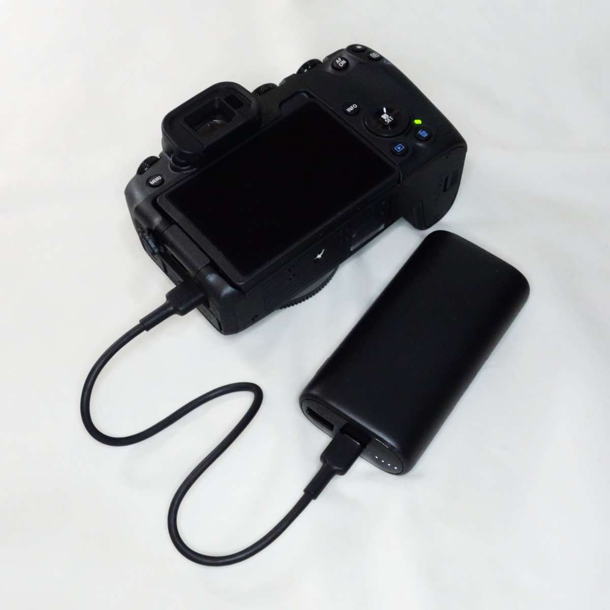 機能の出し惜しみが多いキャノンで新し目の機種でもUSB経由の充電が出来ない事が多いですが、さすがに新型でUSB-C対応の機種では本体の充電が可能になっています。モバイルバッテリーからの充電も対応している事を確認しました。