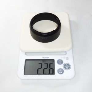 まずはフード無しの状態でUVフィルターを取り付けます。ステップアップリングを介して49mmのフィルターを取り付けた時よりはかなりすっきりしました。