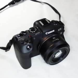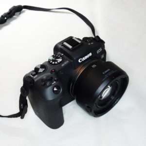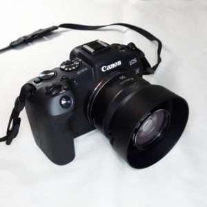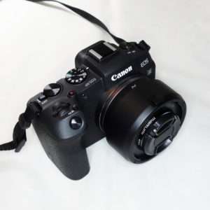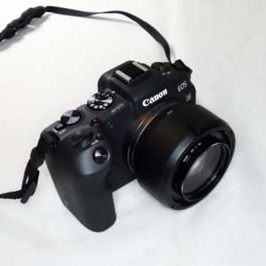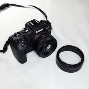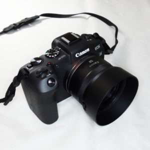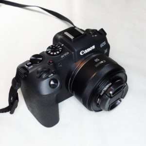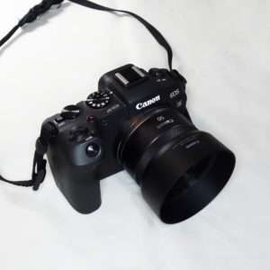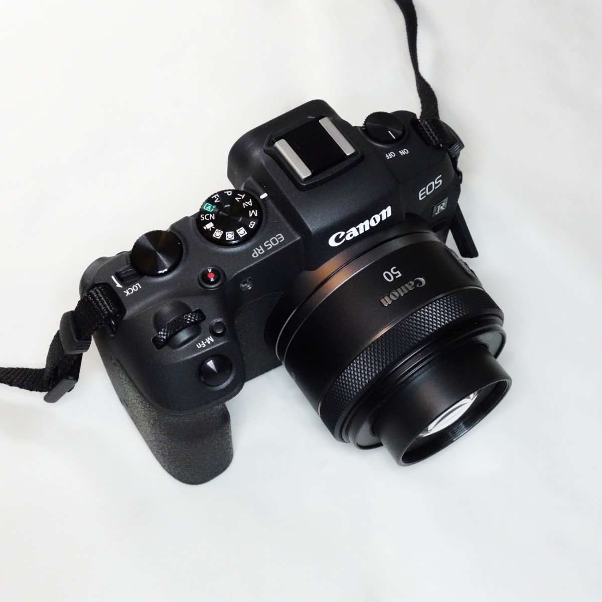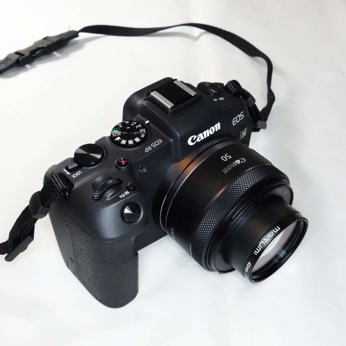 RF 50mm F1.8 STMです(OP/TECHのストラップとNikonのアクセサリーシューカバーが付いています)