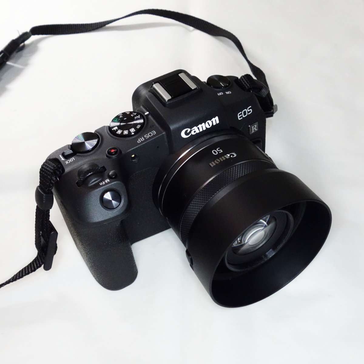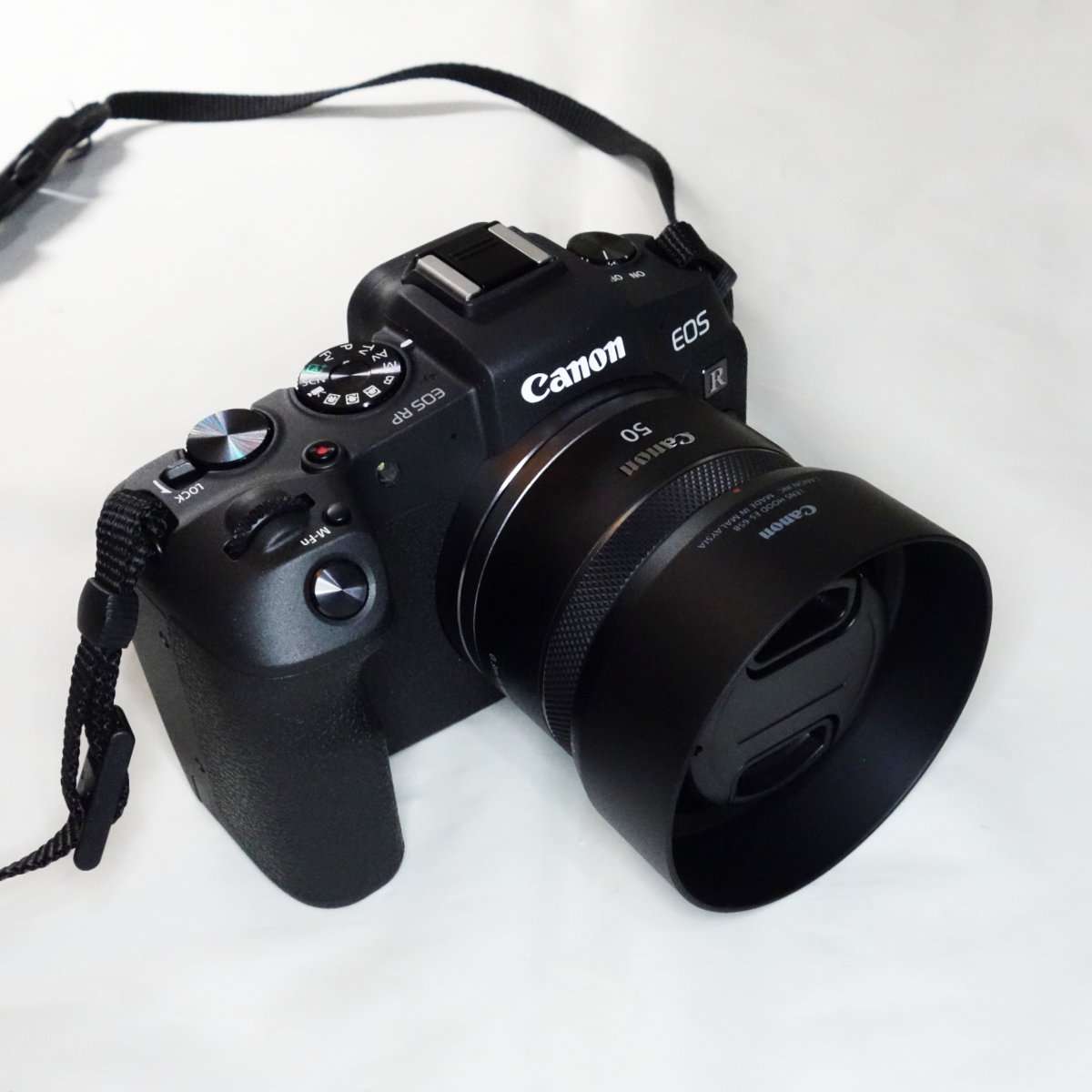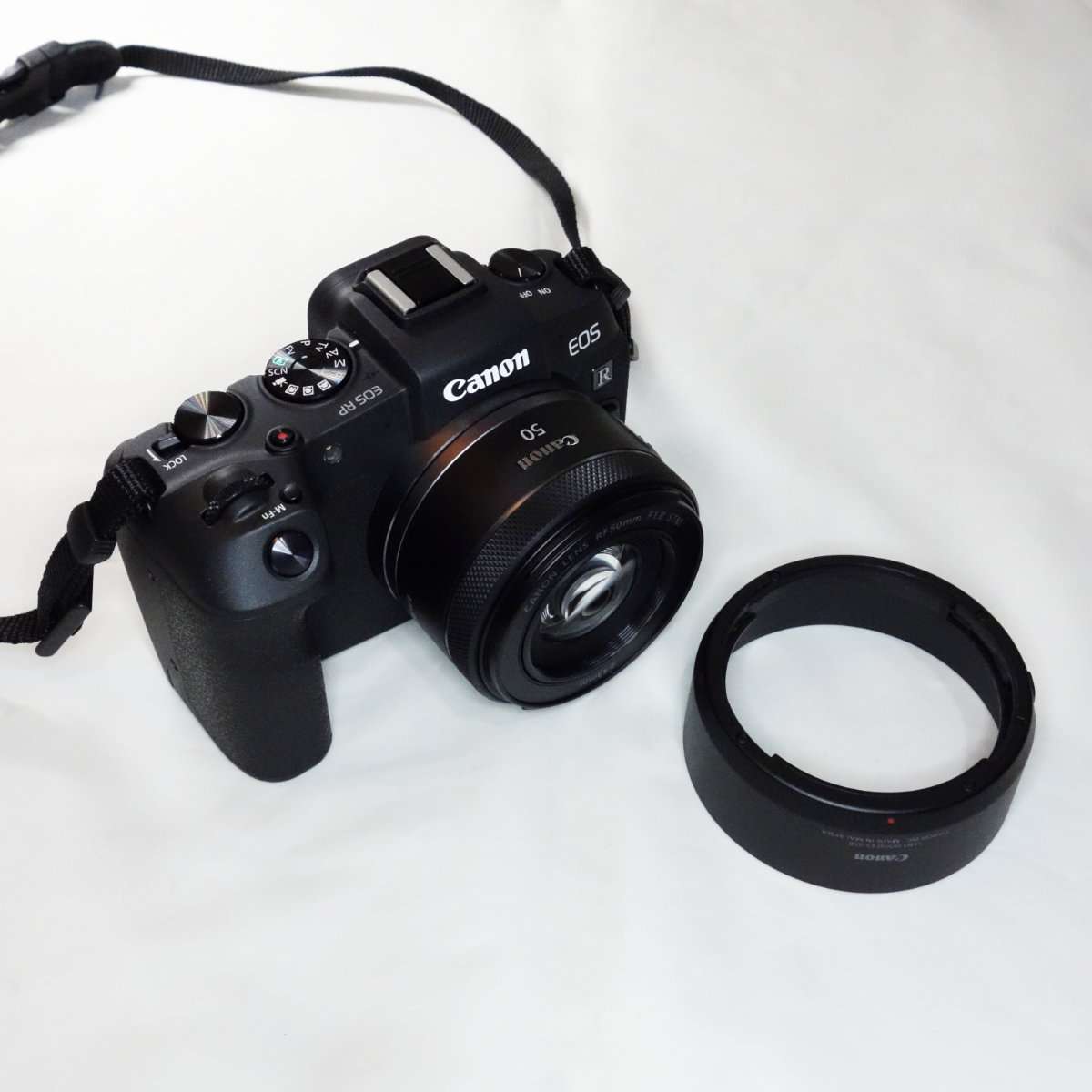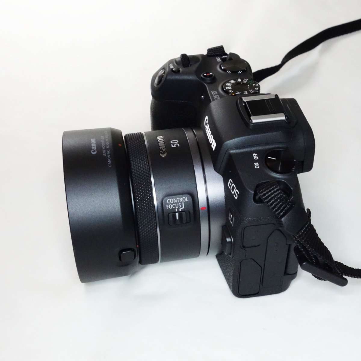 Canon RF 50mm F1.8 STMは電源を入れるとレンズが飛び出てくるのでレンズを守るためにも純正フードを取り付ける事にしました。