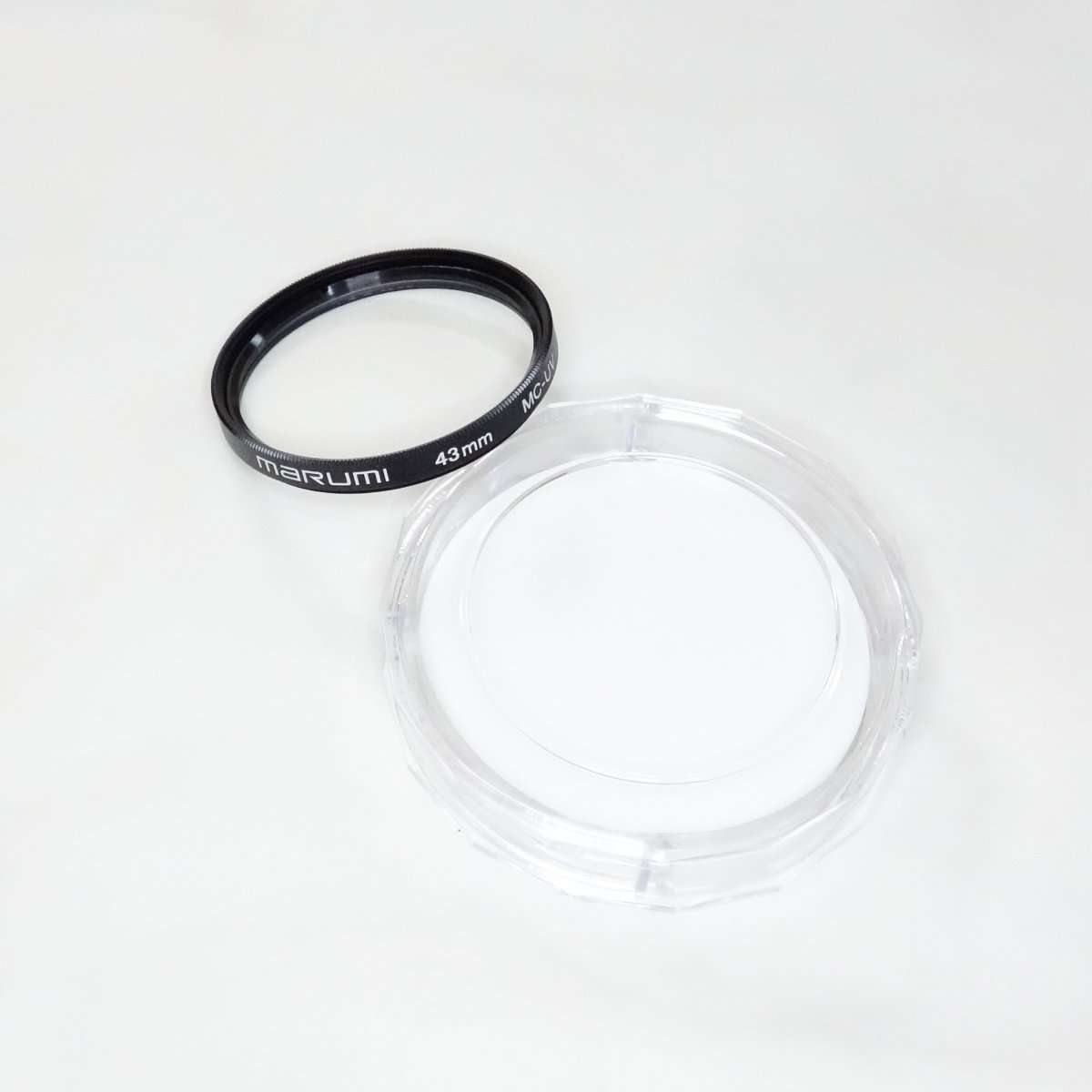 フードで沈胴部も目立たなくなり49mmのステップアップリングも特別なフィルターを取り付ける時以外は必要なくなったので、通常の撮影用に43mm経のUVフィルターを取り付ける事にしました。フィルターはマルミ派なので今回もマルミのサイズ違いを購入しました。