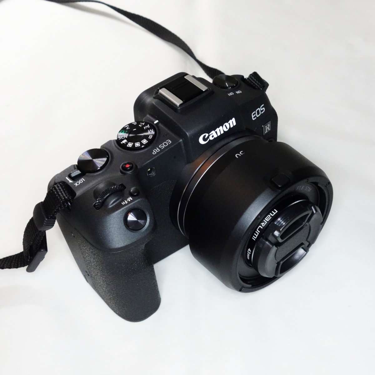 キャノンのミラーレスカメラのRFマウント用レンズであるRF 50mm F1.8です。コンパクトかつ軽量で写りもよく最高のレンズなのですが、残念ながら沈胴式で電源を入れるとレンズが飛び出てきます。むき出しだとレンズ先端をぶつけてしまう可能性もあるのでフードを取り付ける事にしました。もちろんハレーション切りの効果もありますが、フレアとか気にしないのでフードとしてと言うよりは見た目と安全性重視です。これまで使用していた49mmのステップアップリングとフィルターは取り外しました。