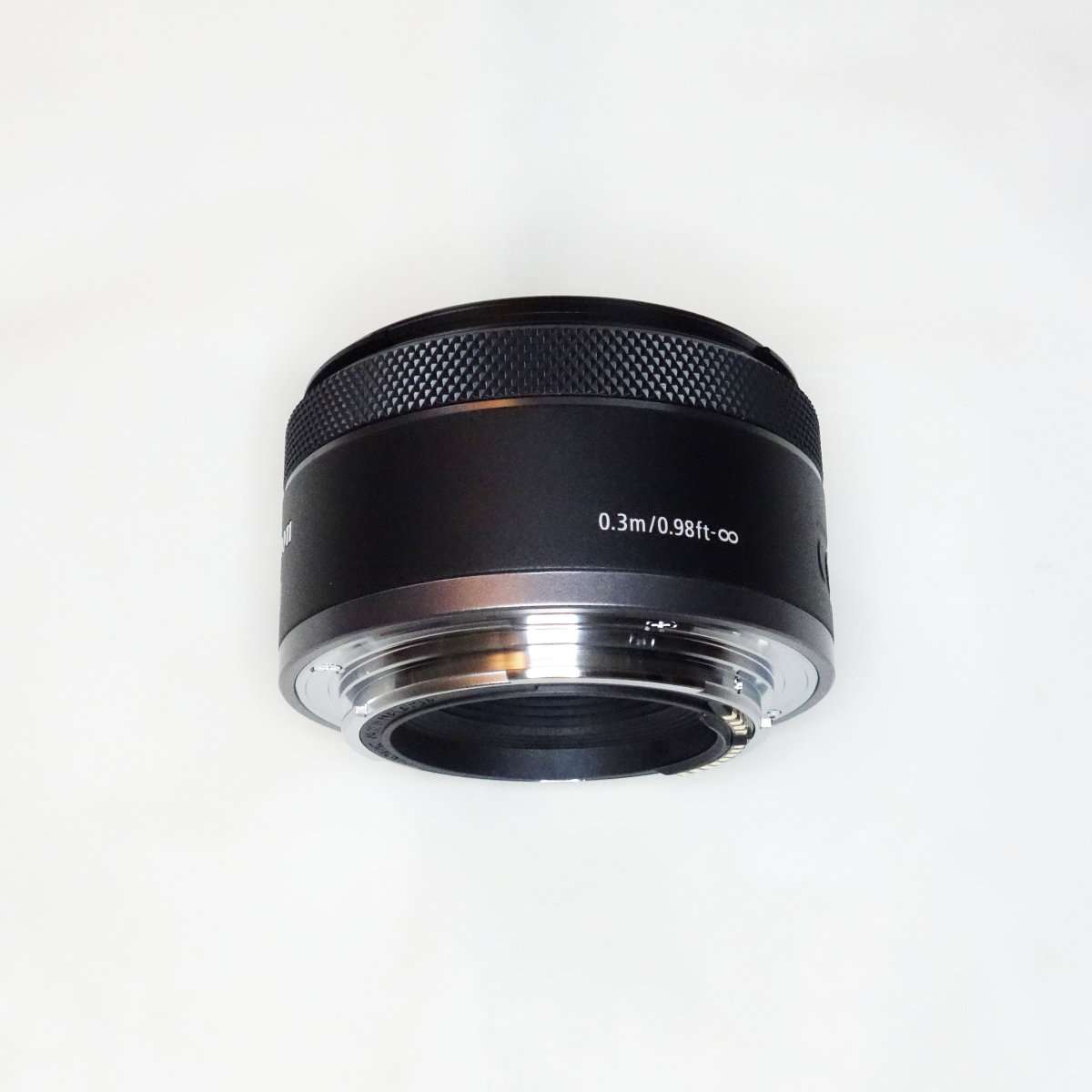 RFマウントからミラーレス化されバックフォーカスが短く出来そうですが、EF時代の50mm F1.8のかなり奥まっていたレンズの位置とそれほど変わってなさそうな見た目です。似ているとは言え最短撮影距離が0.3mに短くなっています。これまでの一眼レフからミラーレスになった最新マウントだけに電子接点の数などが増えてカメラとの通信部分など機能が進化しています。