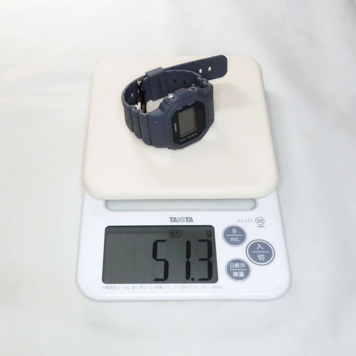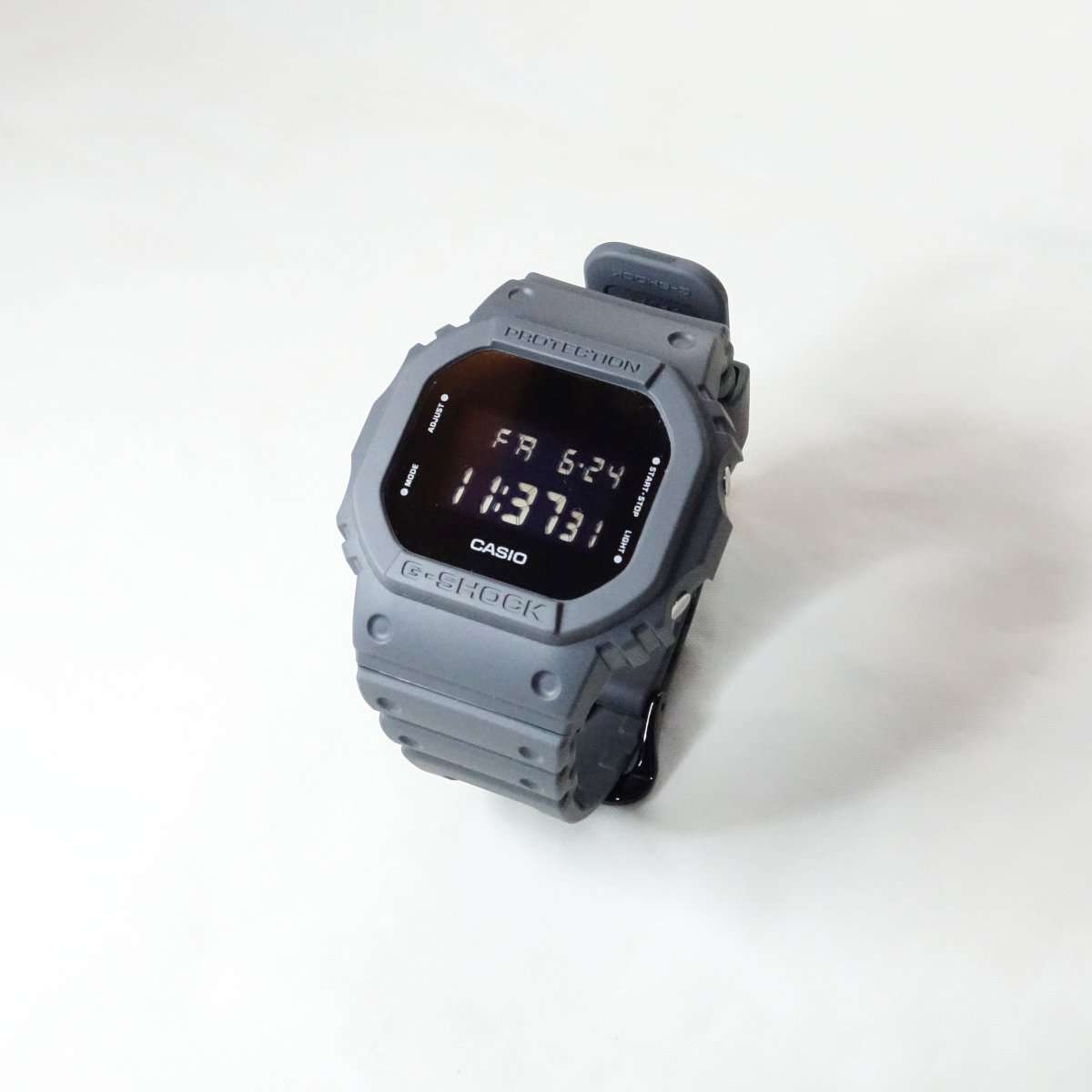 シンプルなG-SHOCKかつ単色にしただけにクラシックにまとまりました。バンドもベルトループもベゼルもカラーが好きに選べるのがカスタムのよいところです。