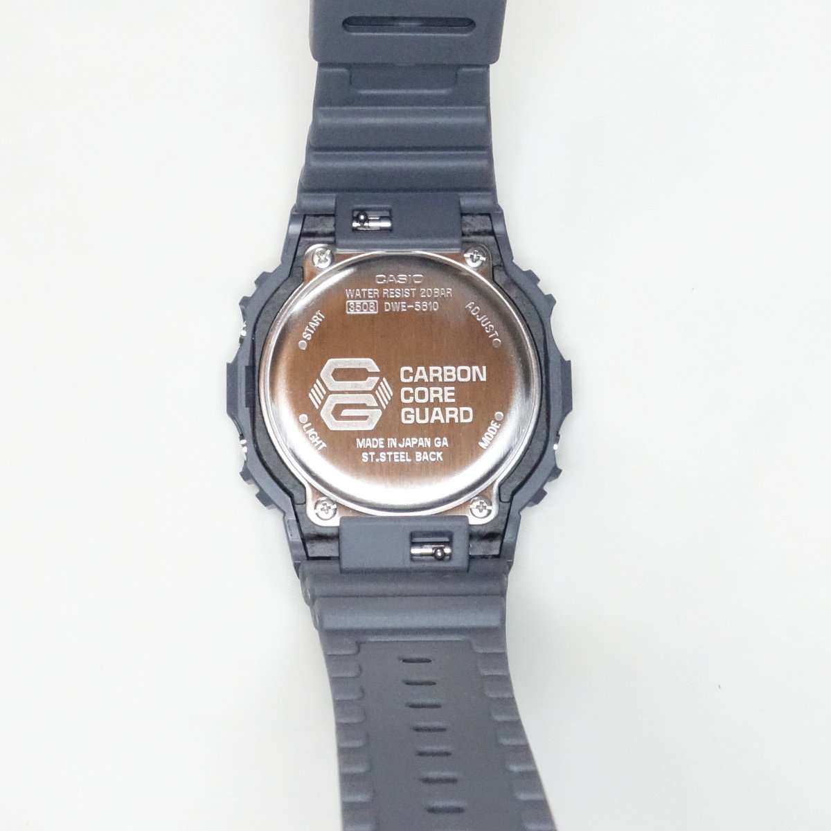 日本で生産して日本で組み立てして発送するだけに裏蓋も特別仕様なのかMade in Japanの刻印がされています。Carbon Core GuardとあるのでGA-2100などと同じ様な作りかと思われます。