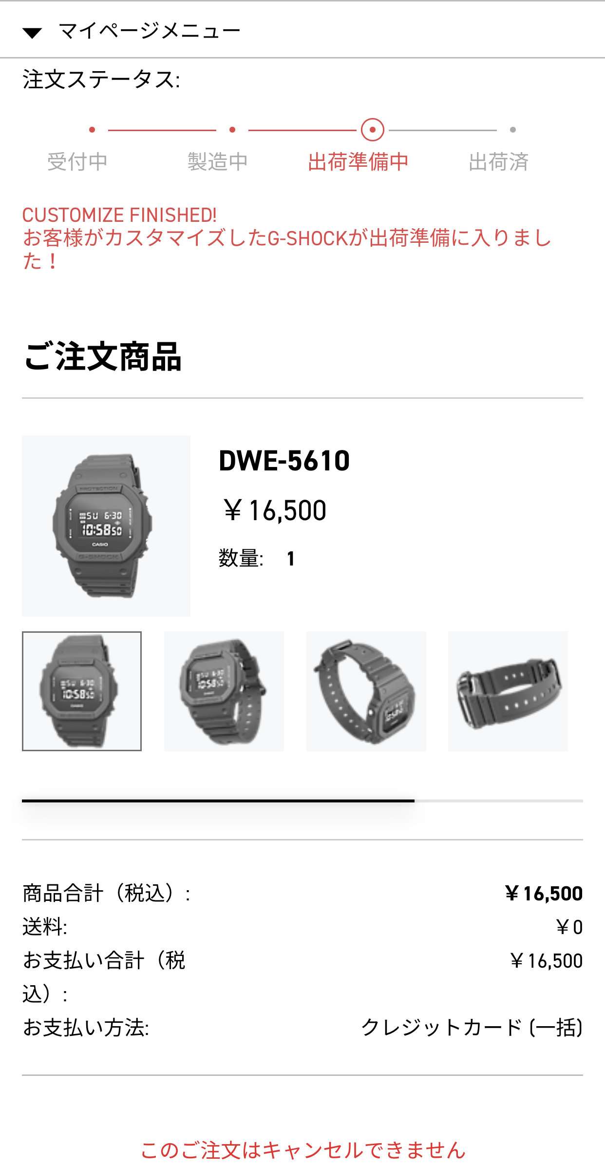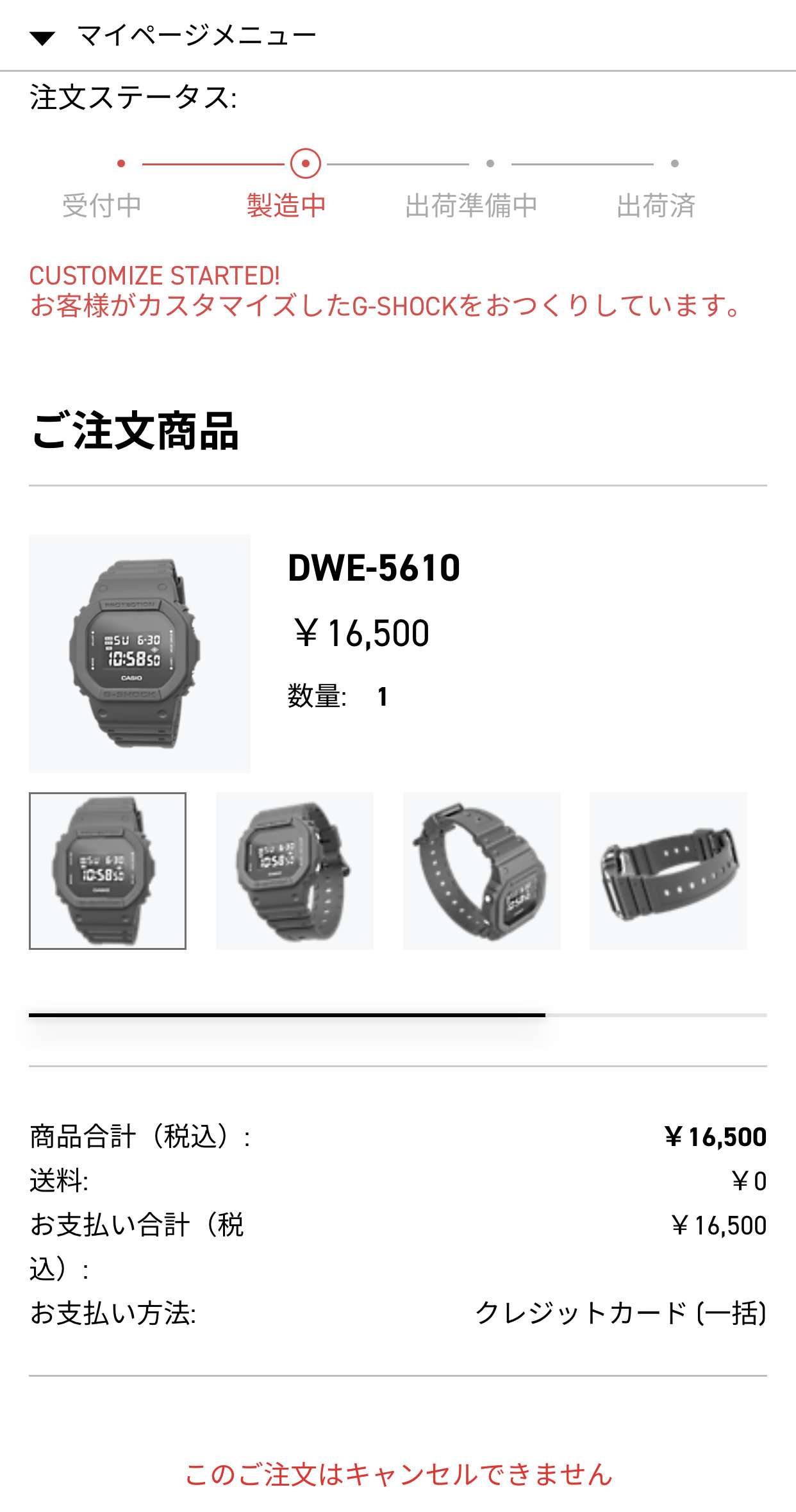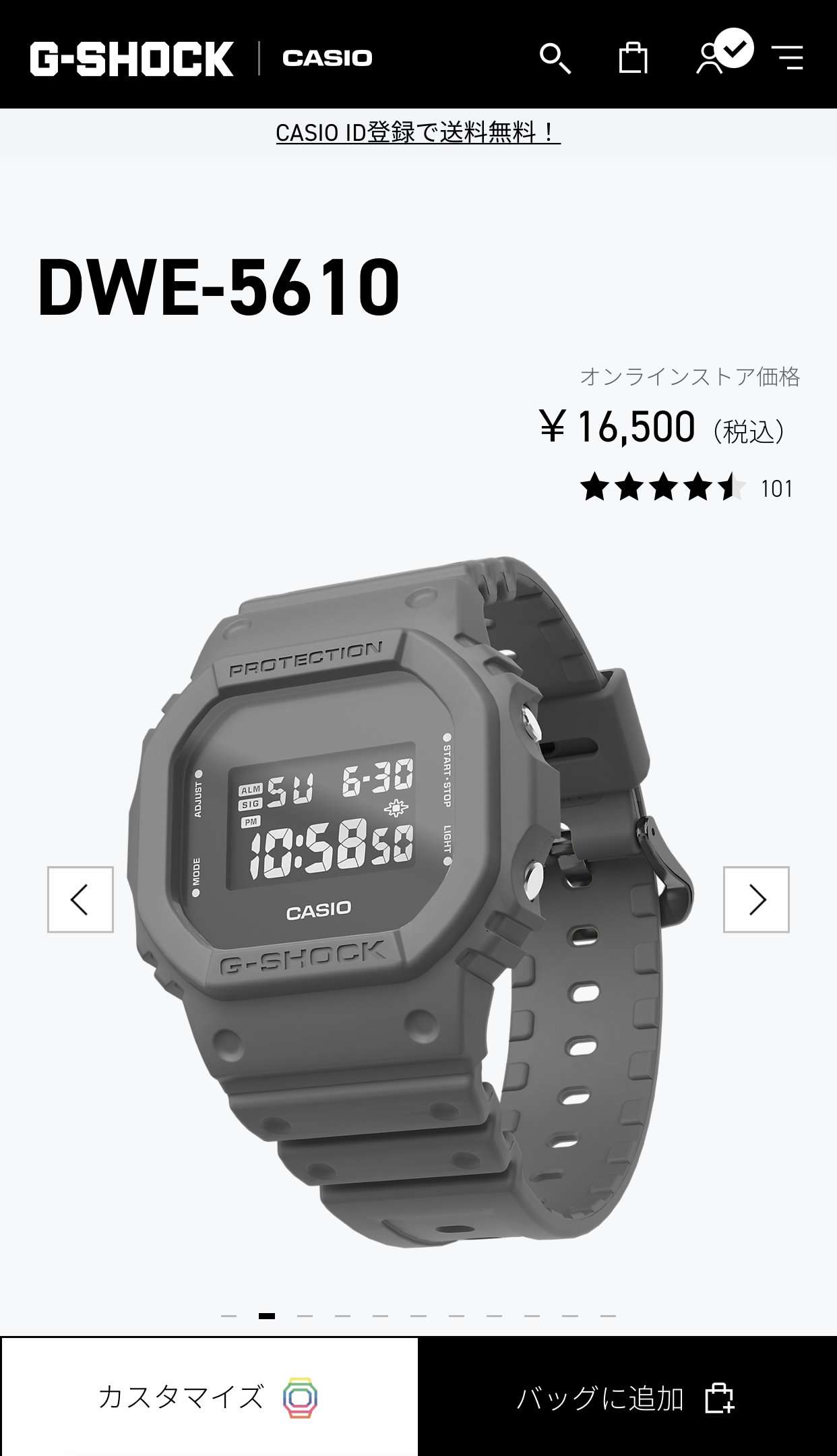 住所などを再度入力しなくてよいのと送料が無料になるのでカシオIDに登録して注文します。カシオIDに登録しておくと注文したカスタムG-SHOCKが自動で登録されて電池交換、修理、説明書へのリンクが表示され便利になります。