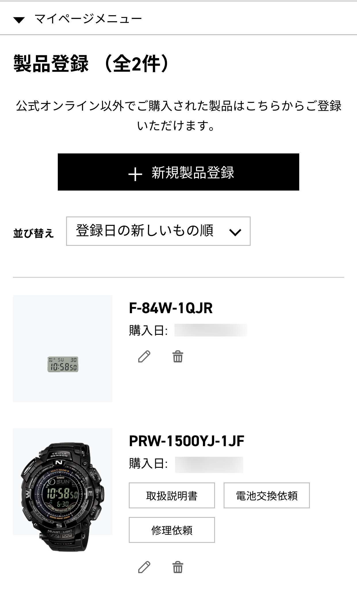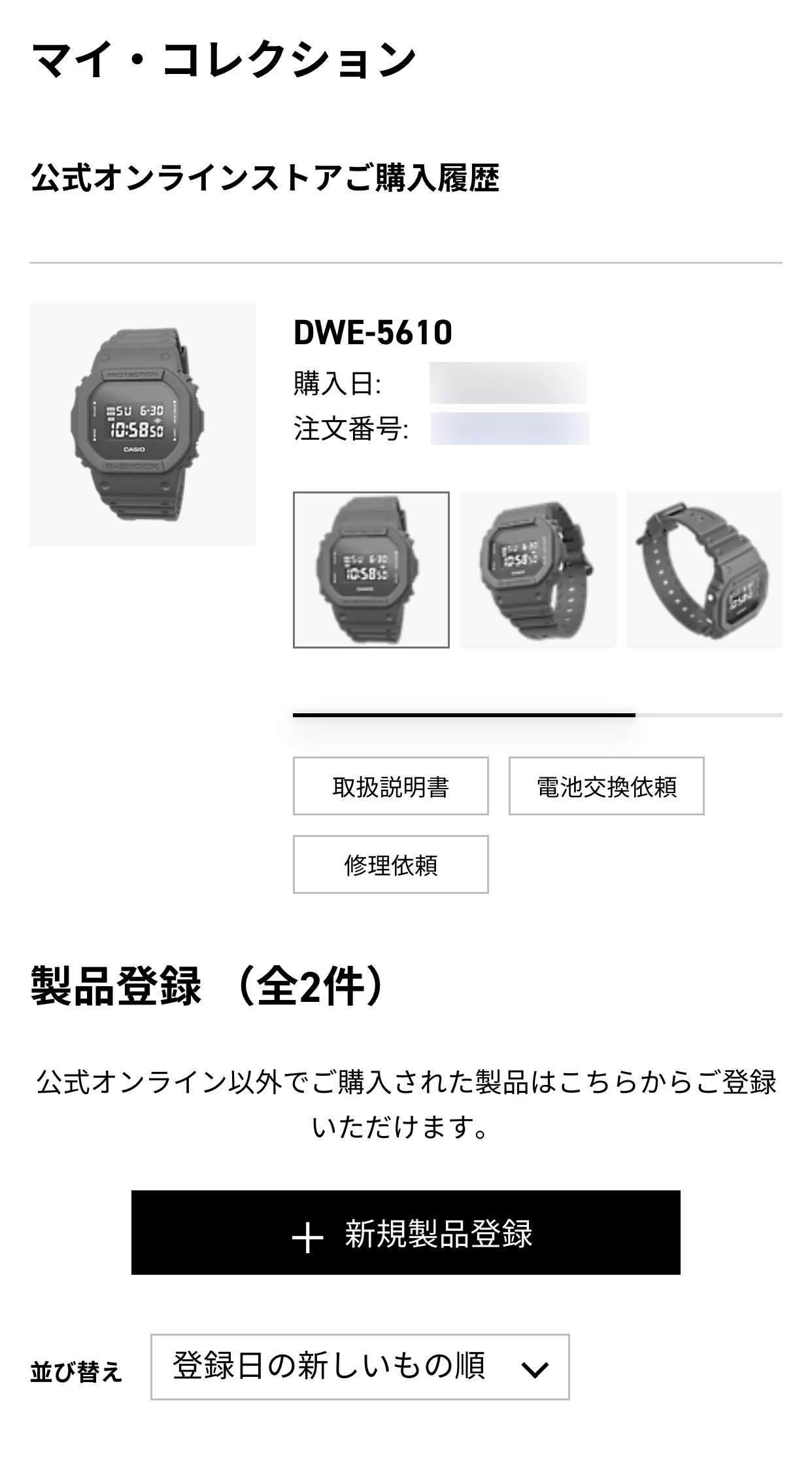 注文したMY G-SHOCKは自動でカシオIDに登録されましたが、古くから使用しているカシオの時計もマニュアルでカシオIDに登録する事が出来ます。一度登録してしまえば電池交換や修理の申し込みのリンクが出来るので、毎回モデルナンバーを調べたり住所を打ち込む必要がなくなるので登録しておきましょう。