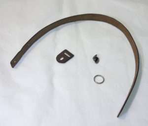 カシメは革の色にあったブラウンを使用します。カシメのサイズにあったカシメ打ちとカシメ打ち台を用意します。カシメの足の長さは使う革の厚さによるので合ったサイズのを使用します。