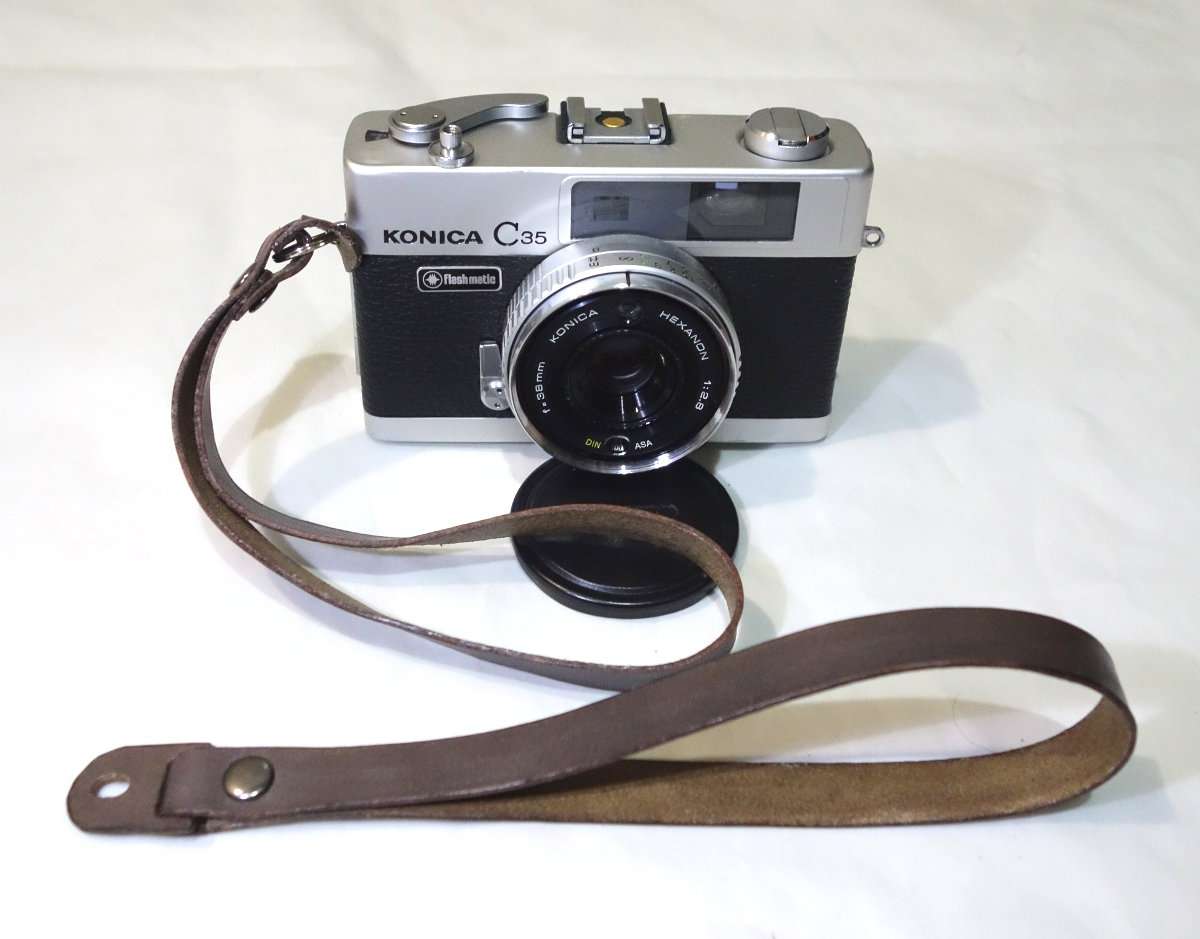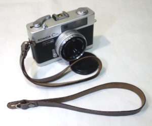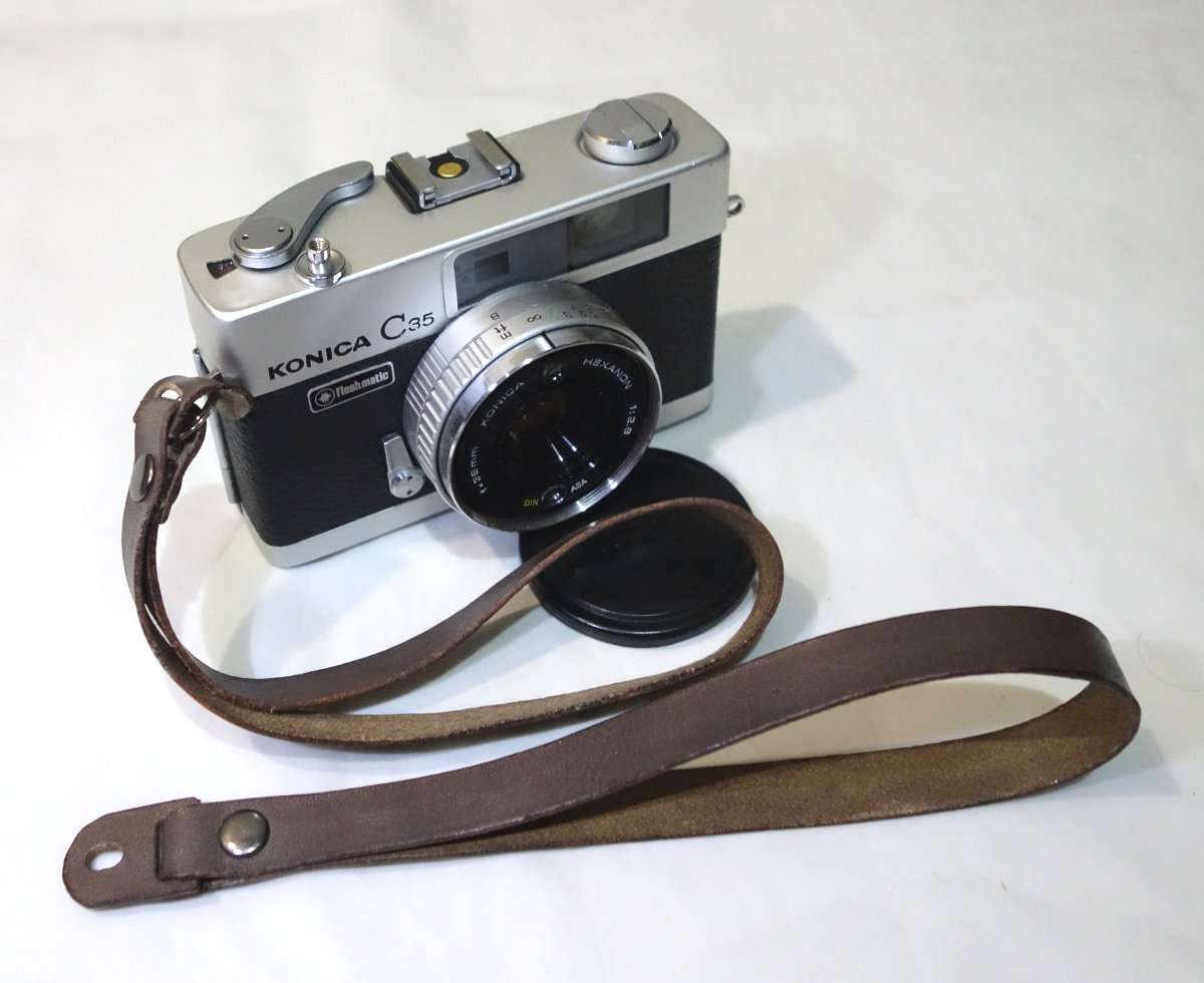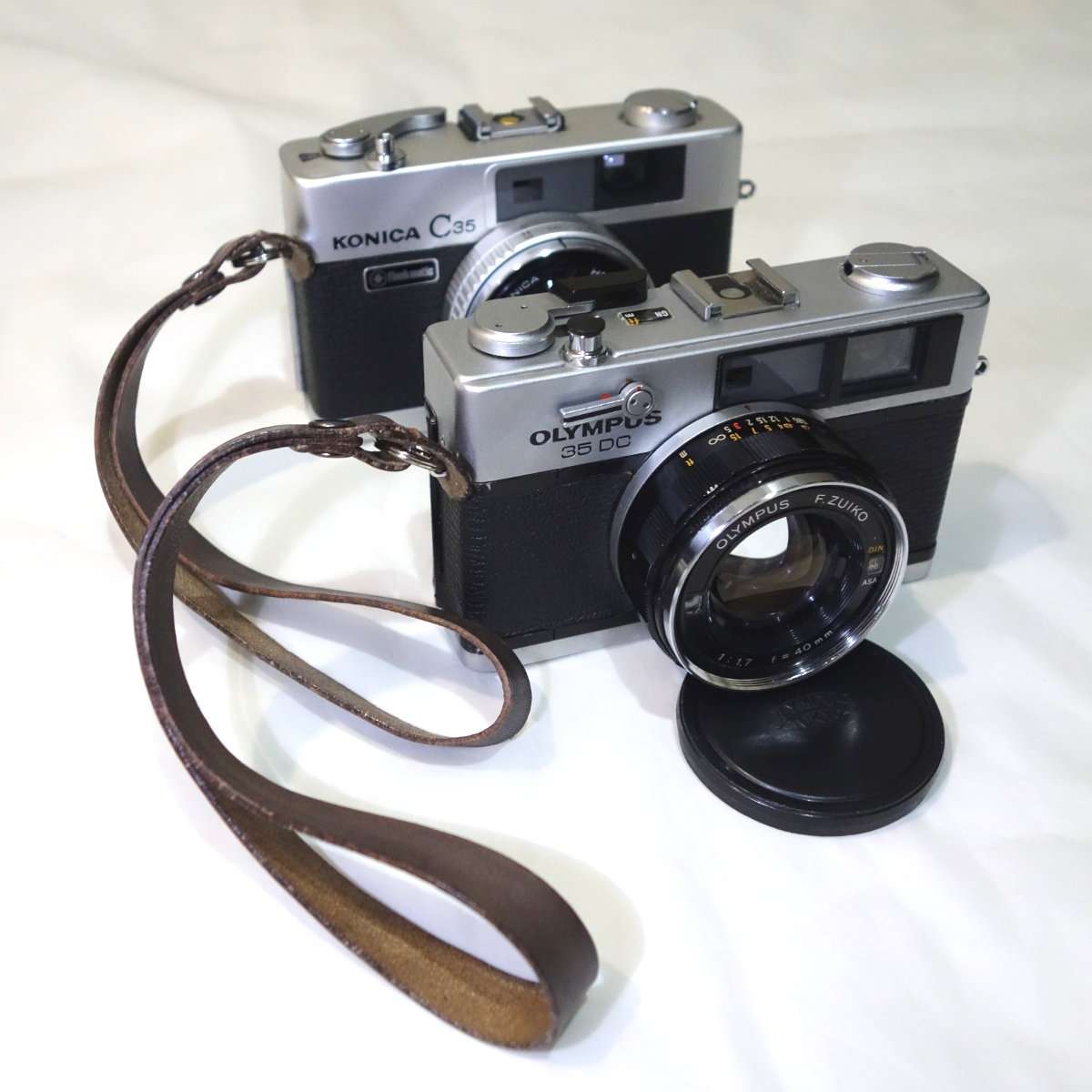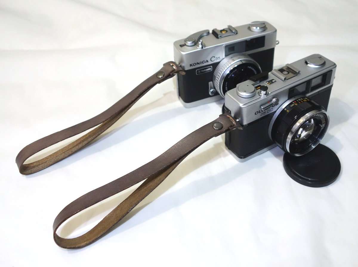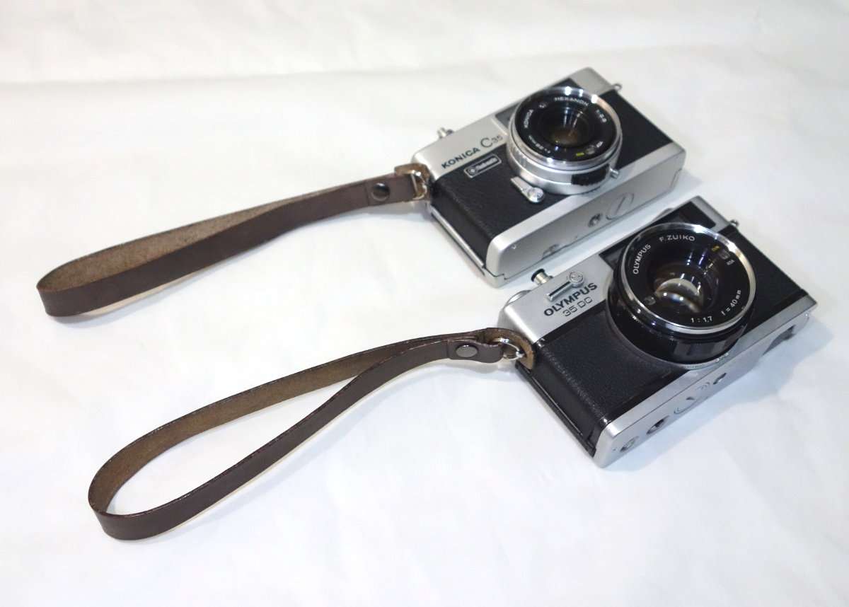 せっかくなので2つのハンドストラップを2つのカメラに取り付けました。今回のハンドストラップは同じ年代に作られたレンジファインダーカメラのオリンパス 35DCに取り付けました。ハンドストラップはC35フラッシュマチックより若干大きい35DCにも問題なく使用出来ます。