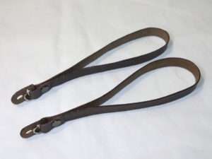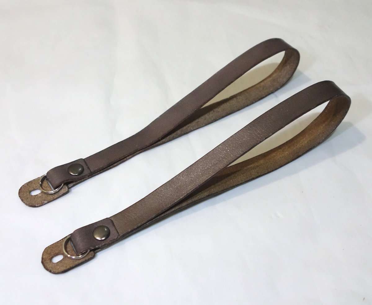 前回よりあっさり作り終わったので、前回作ったハンドストラップの前に並べてみました。前回とは側面の断面(コバ)の処理方法を少し変えて若干色味を変えました。前回作ったストラップはコンパクトなフィルムレンジファインダーカメラのコニカ C35フラッシュマチック前期型に取り付けています。