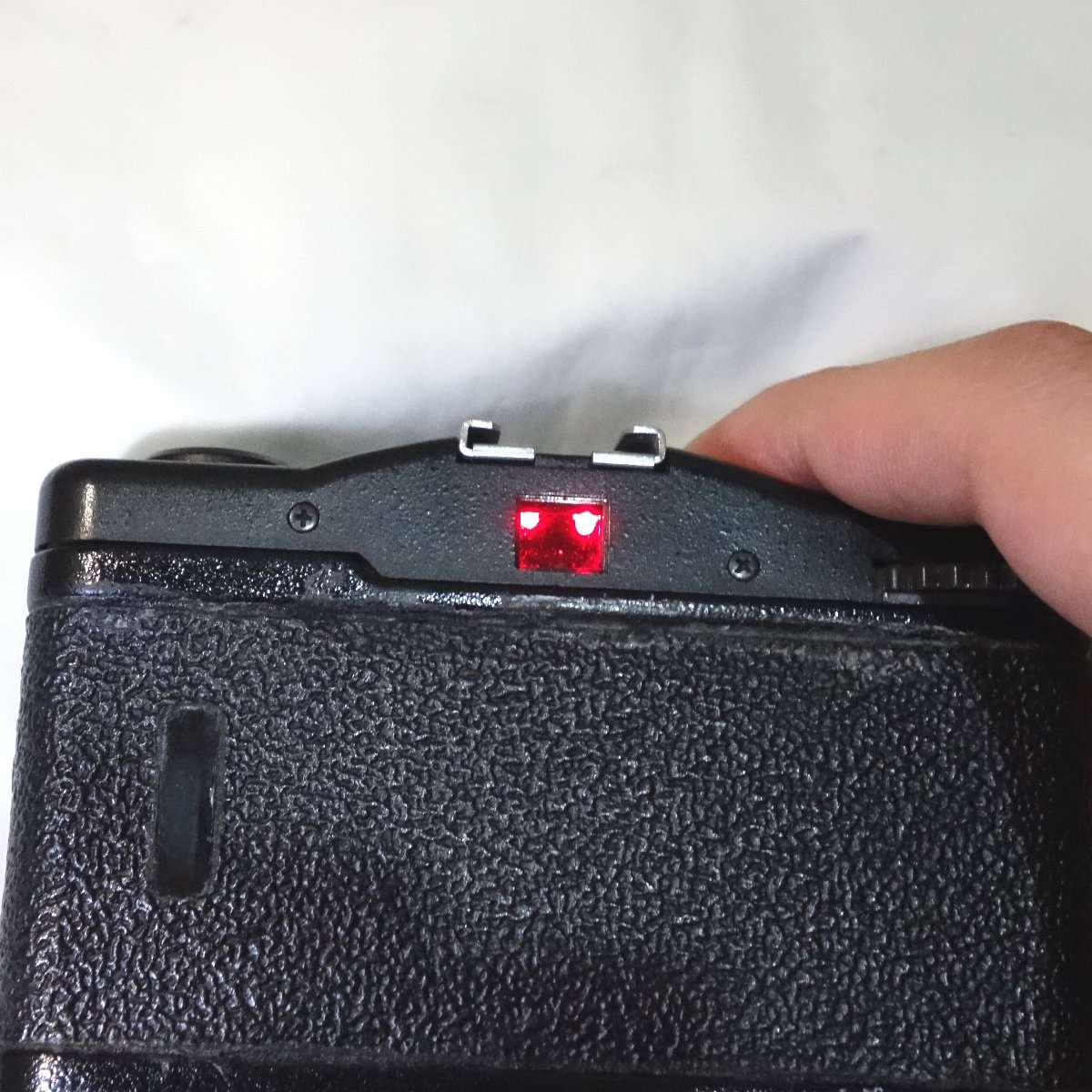 シャッターを半押しするとバッテリーチェックのLEDが光り、暗い場合はスローシャッター警告も光ります