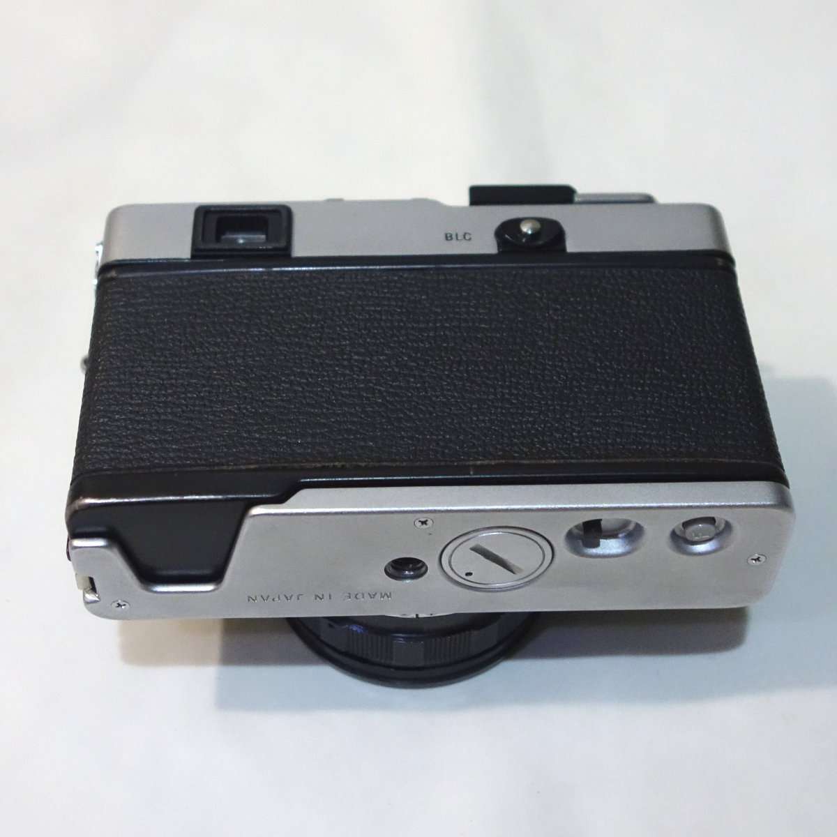 大きさはコニカC35(C35)ミノルタHi-Matic E(ハイマチックE)のちょうど中間くらいで、レンズがとても大きく壮観です。見た目ではセルフタイマーのレバーの位置かなり上の方にあり珍しい作りで、それ以外は他のEEカメラと同等です。シャッターボタンにある黒いレリーズボタンは最初から付いていました。