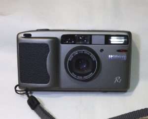 リコー R1(R1)のフィルムの充填方法やレイアウトなど既に基本部分は完成されており、リコー GR1(GR1)の前身となるカメラです。大まかに言うとレンズが良くなって絞り設定を自分で出来るようになったR1がGR1です。使い勝手などほとんどこの頃には完成されていて、無駄な機能がない分R1の方がすっきりしています。