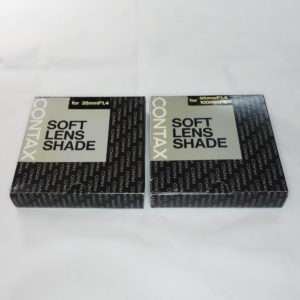 今回選んだのはCONTAX(コンタックス)の古いラバーフードで商品名がSOFT LENS SHADE(ソフトレンズシェード)で型番G-13が85mm F1.4と100mm F2用でG-14が35mm F1.4用で、取り付けのフィルター枠はどちらも67mmになります。古い物なのでもちろん中古ですがフードでは珍しく元箱入でした。このラバーフードはCONTAX Planar T* 85mm F1.4、Planar T* 100mm F2用とDistagon T* 35mm F1.4用で、いわゆるヤシカコンタックス時代のフィルム一眼レフカメラのCONTAX ARIAなどに使用されてたレンズ用になります。