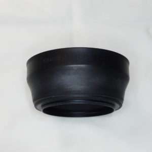 カメラレンズ用のラバーフードは持ち運び時やケースの中で折りたたみが出来てぶつけた時の衝撃にも強くレンズを守るので機能的に優れていて、ズームやレンズの画角の違いに対応するようにラバー自体で段階調節が出来たりする物もあります。ラバーフードは今でもサードパーティ製で出ていますが、最近では見栄えが貧乏くさいと人気がなく主要なカメラやレンズメーカーで出しているのをすっかり見かけなくなりました。フィルムカメラ用であればメタルフード、AF(オートフォーカス)以降の一眼レフカメラや現在のミラーレスカメラ用のレンズだとLeicaを除いてプラスチック製のフードが主流かと思います。