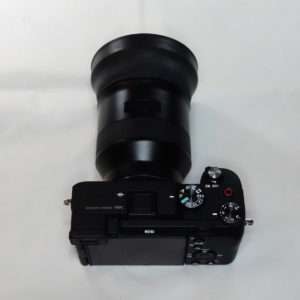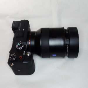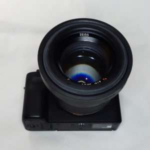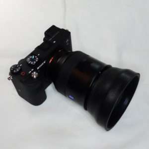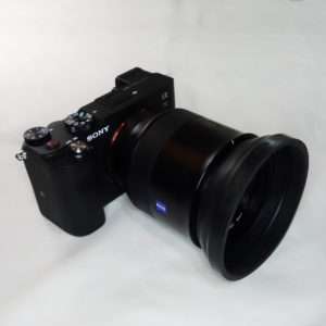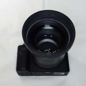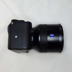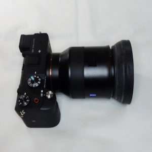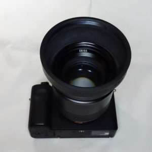 a7CにBatis 85mmを取り付けた状態でCONTAXの85mm用ラバーフードを取り付けてみました。焦点距離85mm、100mm用だけにレンズとの大きさのバランスはとてもよいです。ラバーフードの形状によってBatis 85mmのレンズの湾曲部分のギャップもそれほど目立ちません。