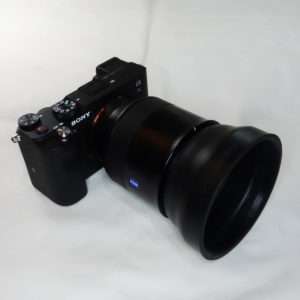 ソニーa7CにZeiss Batis 85mmを取り付けた状態です。Batis 85mmはそのまま撮って色がよい素晴らしいレンズで画角が85mmなのも気に入っています。Batis 85mmはフードと一体型のデザインなのでレンズの端がカーブしていて出っ張っているので、これをどうにかしたくて今回のフードを選んだのもあります。