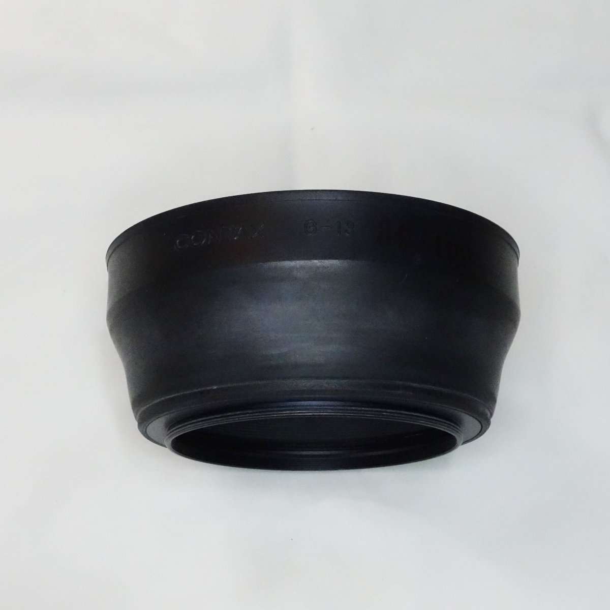 今回選んだのはCONTAX(コンタックス)の古いラバーフードで商品名がSOFT LENS SHADE(ソフトレンズシェード)で型番G-13が85mm F1.4と100mm F2用でG-14が35mm F1.4用で、取り付けのフィルター枠はどちらも67mmになります。古い物なのでもちろん中古ですがフードでは珍しく元箱入でした。このラバーフードはCONTAX Planar T* 85mm F1.4、Planar T* 100mm F2用とDistagon T* 35mm F1.4用で、いわゆるヤシカコンタックス時代のフィルム一眼レフカメラのCONTAX ARIAなどに使用されてたレンズ用になります。